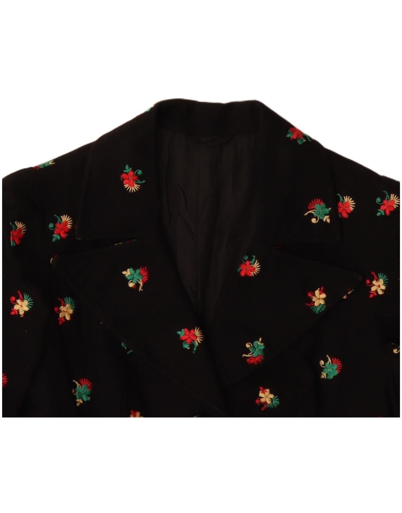 Giacca blazer da donna a 4 bottoni VINTAGE UK 10 piccolo floreale nero