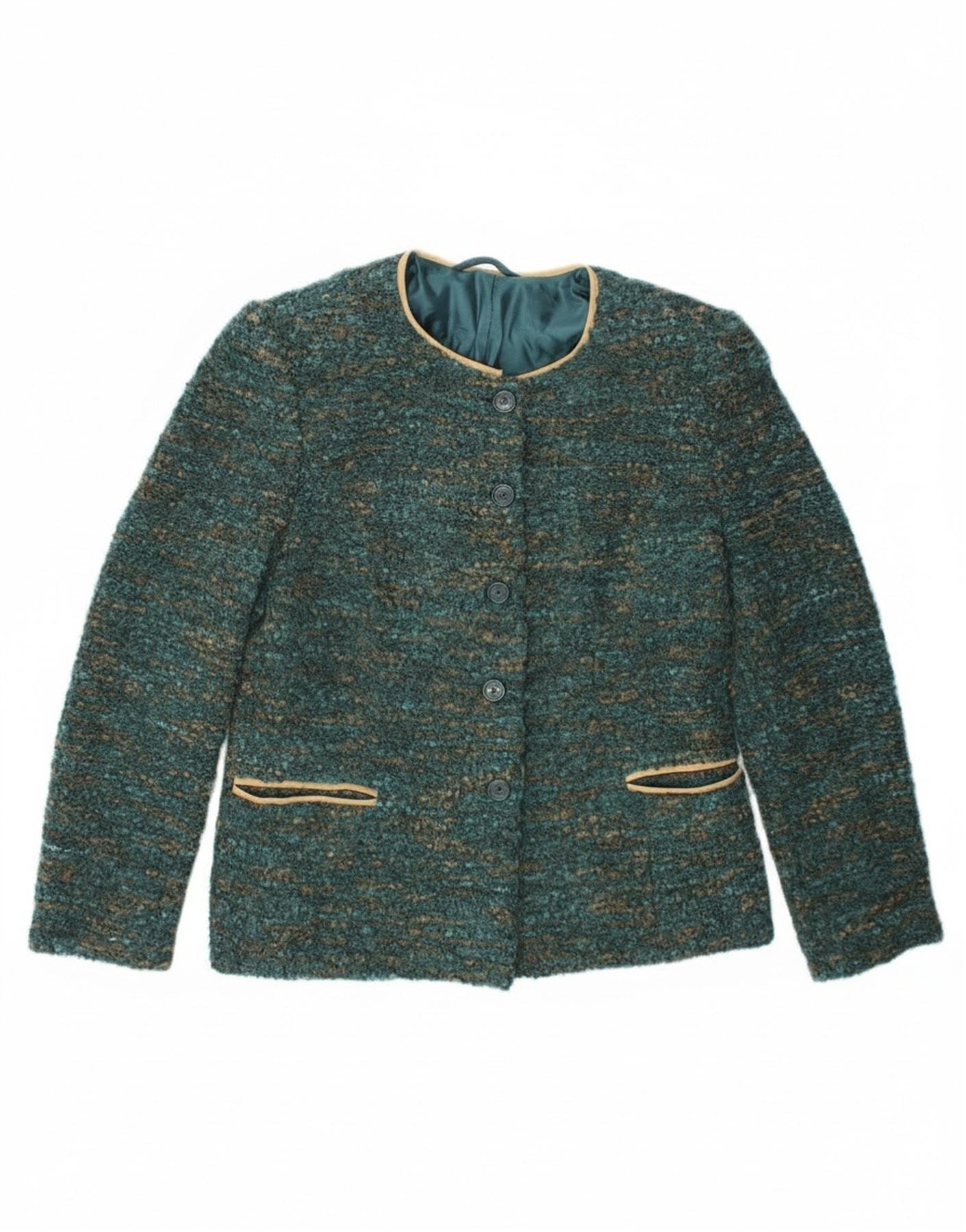 Giacca blazer vintage da donna a 4 bottoni UK 12 verde medio screziato