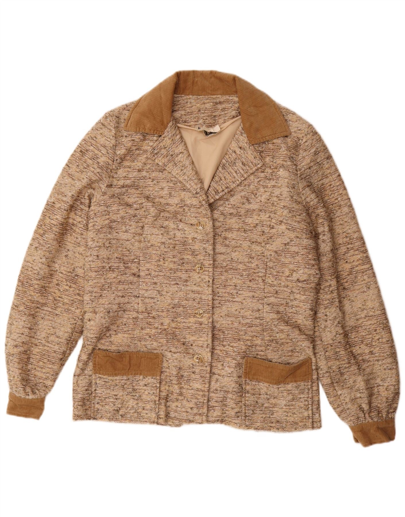 Giacca blazer vintage da donna a 4 bottoni UK 14 grande beige screziato