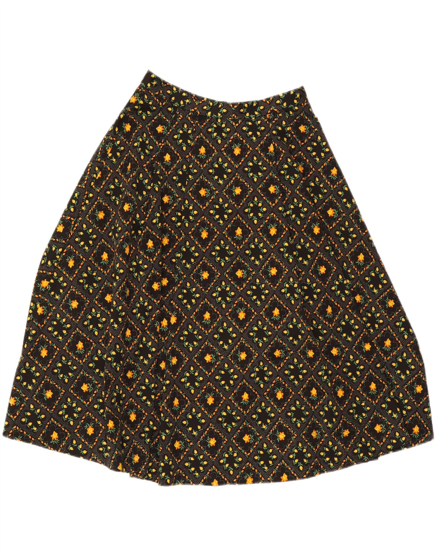 Gonna a trapezio da donna VINTAGE W26 piccola floreale nera