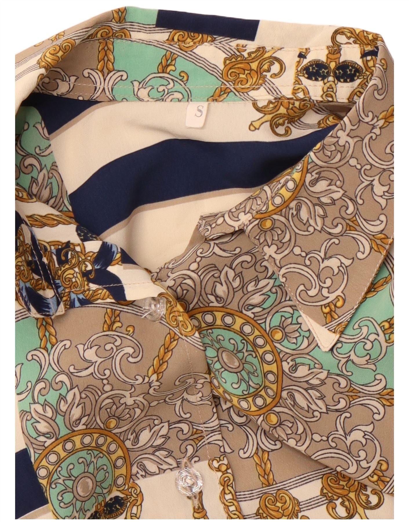 Camicetta camicia oversize da donna vintage con motivo astratto UK 10 piccola Beige