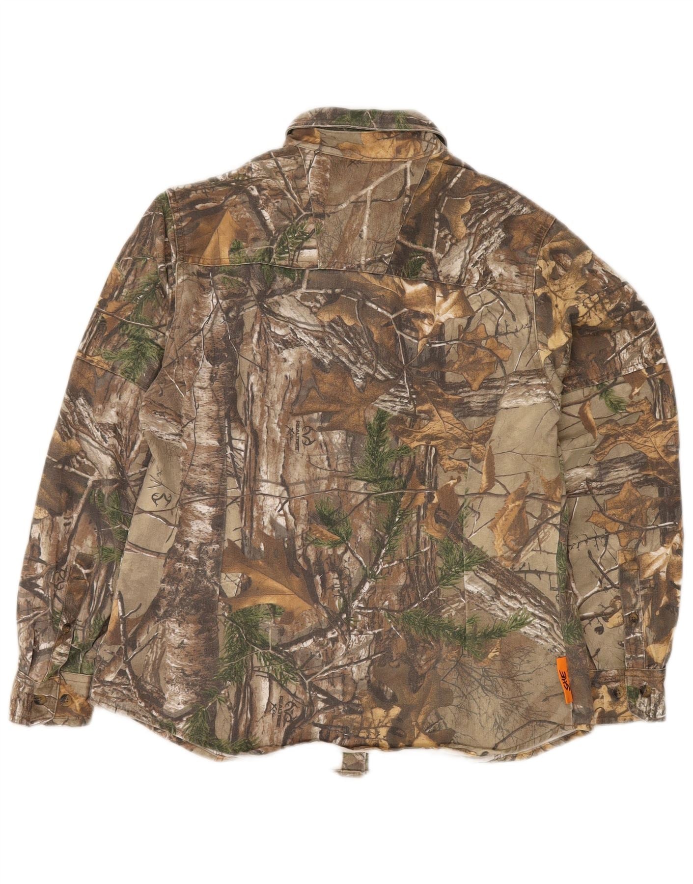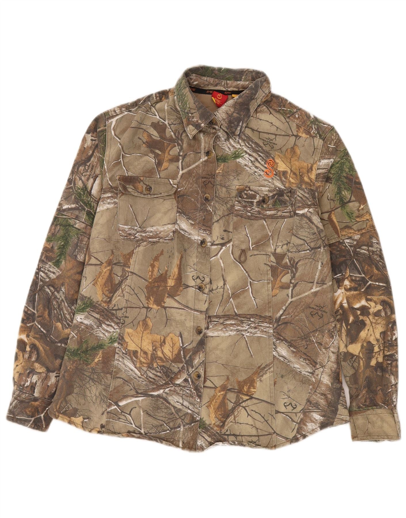 Camicia da donna con motivo astratto VINTAGE UK 16 grande cotone color kaki