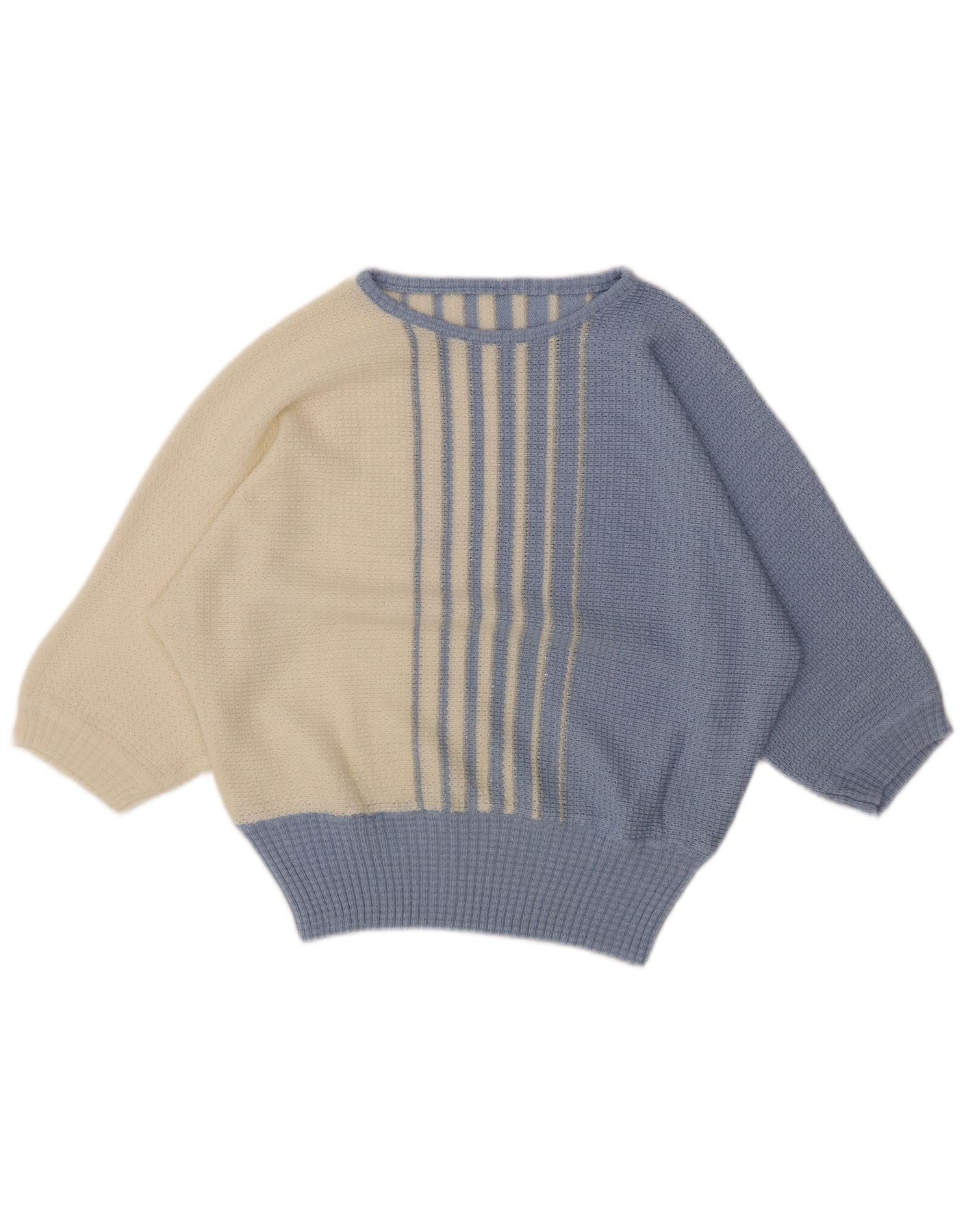 Maglione da donna VINTAGE con scollo a barca a pipistrello UK 10 piccolo a righe blu