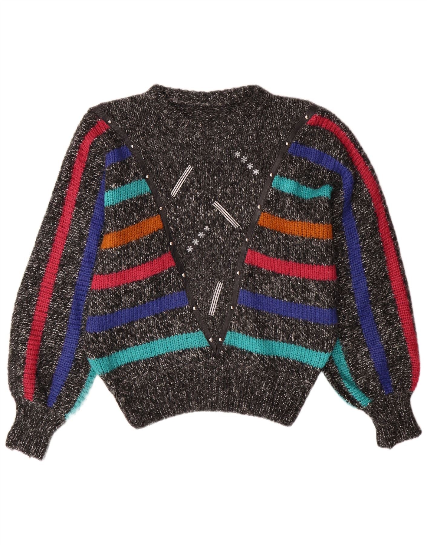 Maglione maglione girocollo a pipistrello da donna VINTAGE UK 14 grigio medio a righe