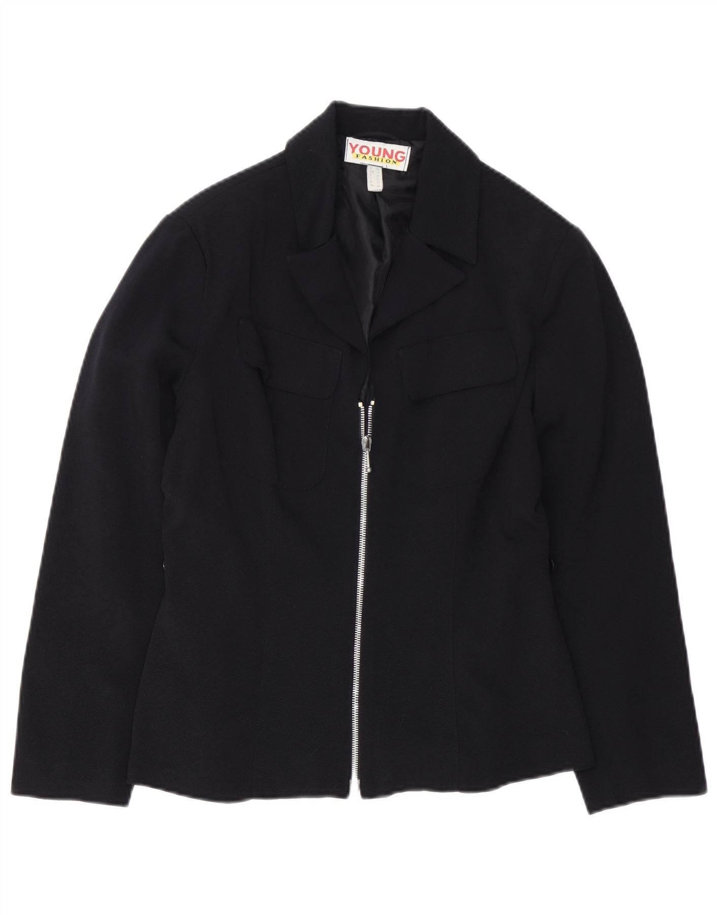Giacca blazer da donna vintage UK 10 piccola in poliammide blu navy