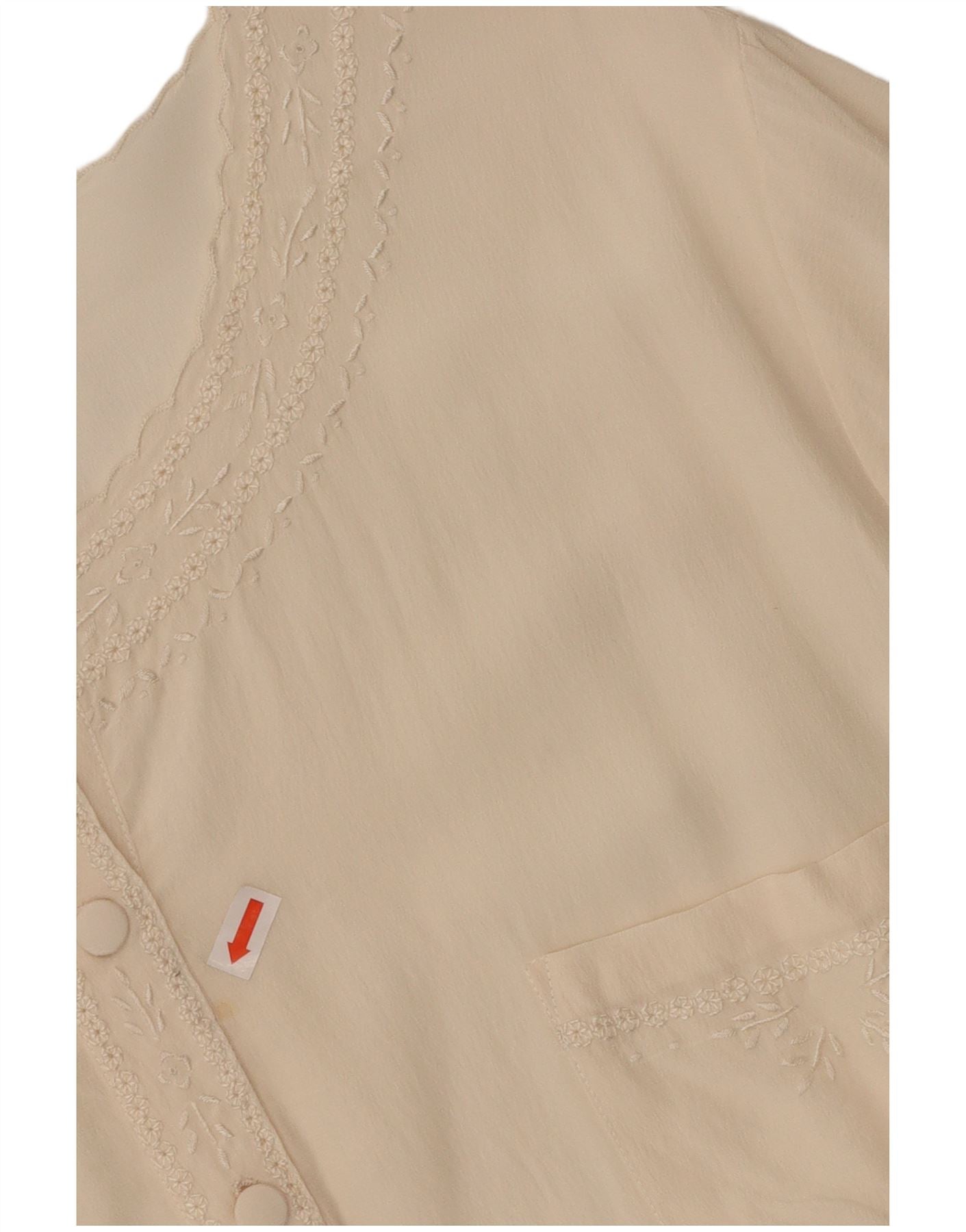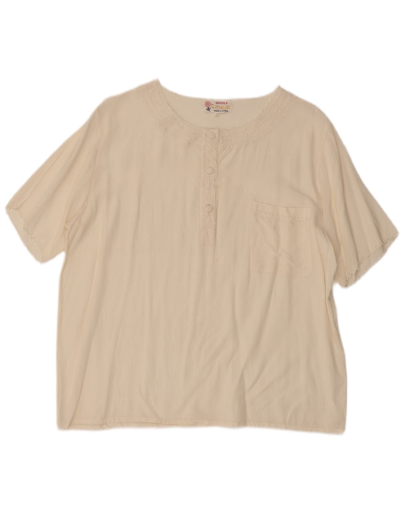 Top camicetta da donna VINTAGE UK 16 grande seta bianco sporco
