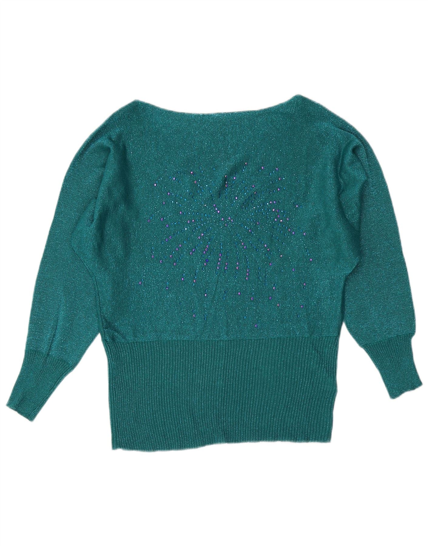 Maglione maglione con scollo a barchetta da donna VINTAGE UK 16 grande lana screziata verde