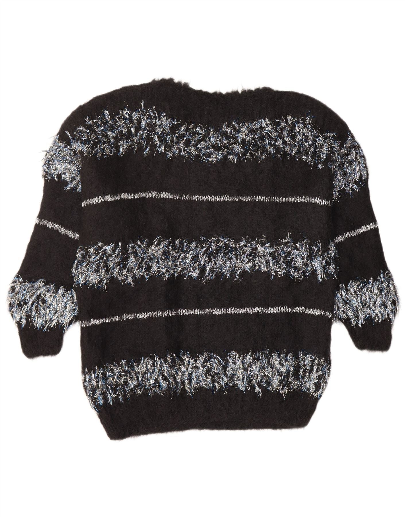 Maglione maglione con scollo a barca da donna VINTAGE UK 18 XL a righe nere