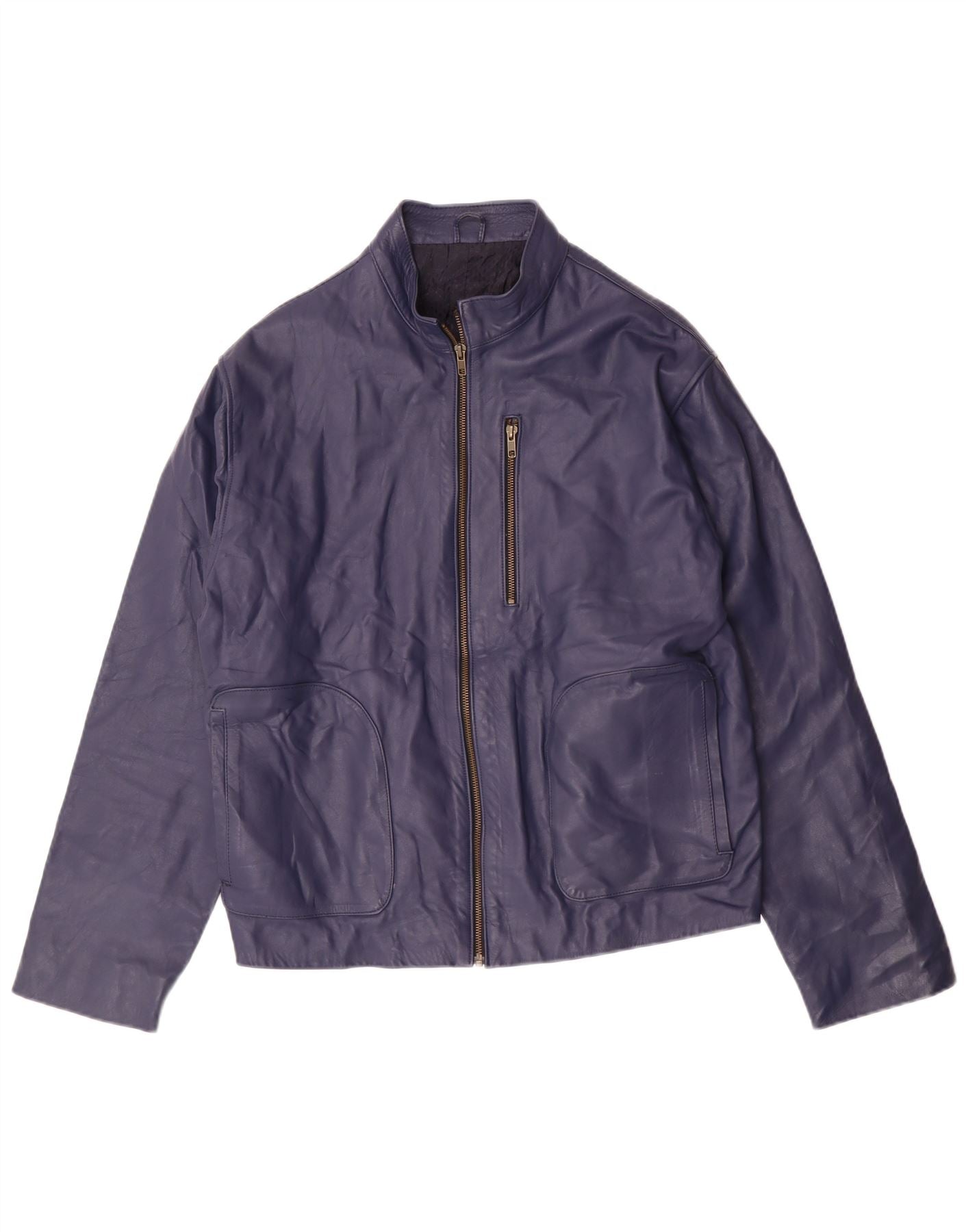 Giacca in pelle bomber da donna vintage UK 14 medio blu navy