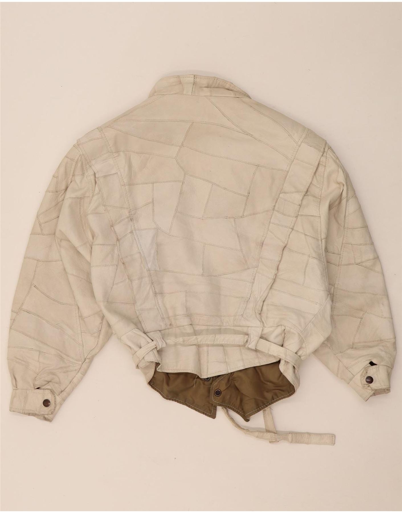 Giacca in pelle bomber da donna VINTAGE UK 14 Pelle bianca media