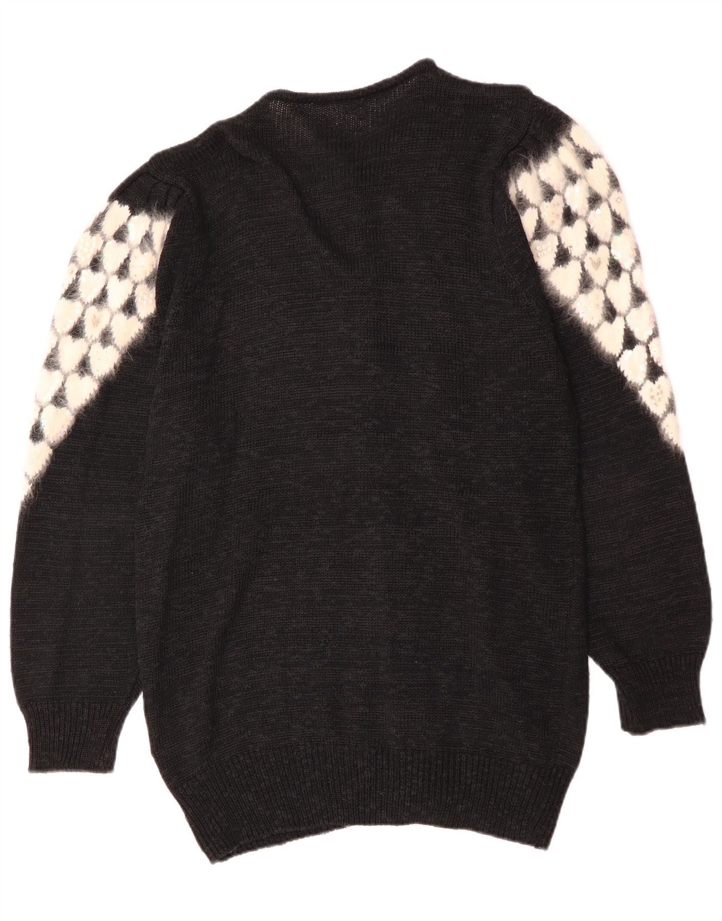 Maglione cardigan da donna vintage EU 38 cuore in poliacrilico nero medio