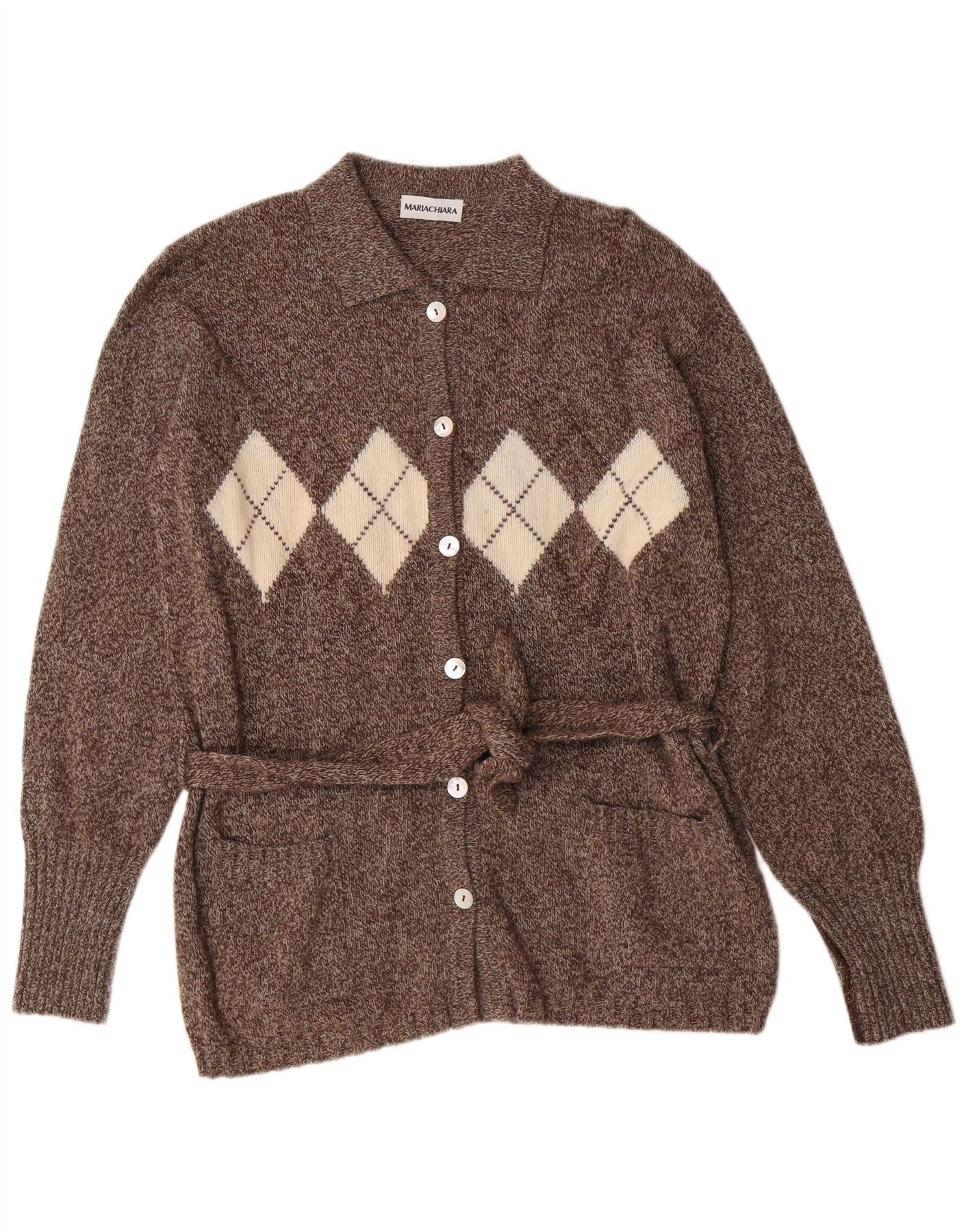 Maglione cardigan da donna VINTAGE UK 14 Marrone medio Argyle/Diamante