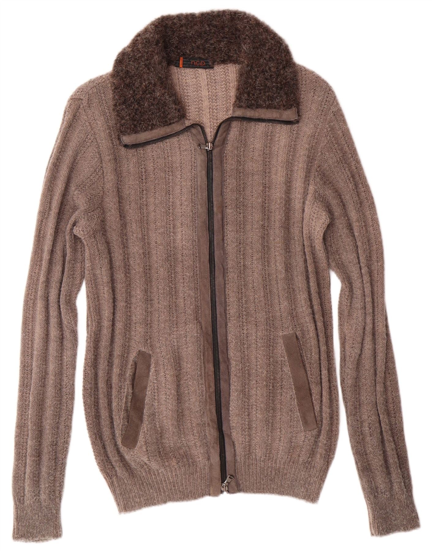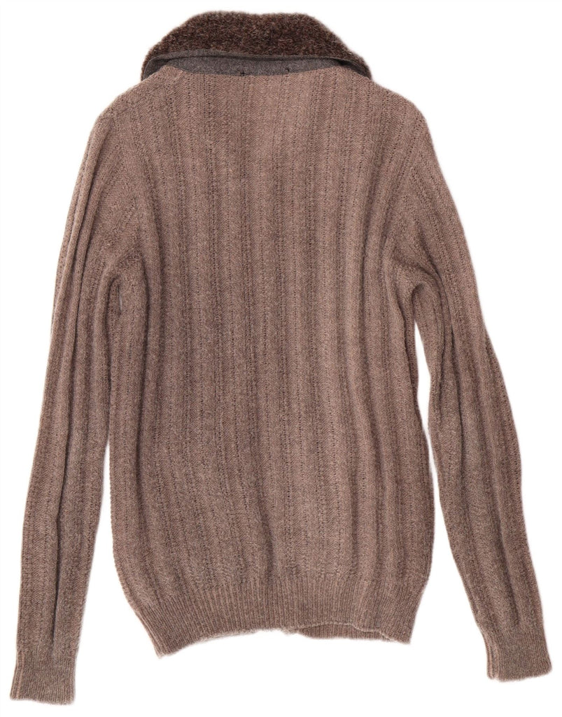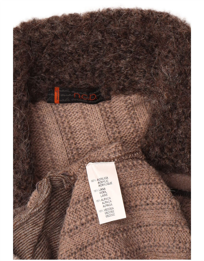 Maglione cardigan da donna VINTAGE UK 14 Acrilico a righe marrone medio