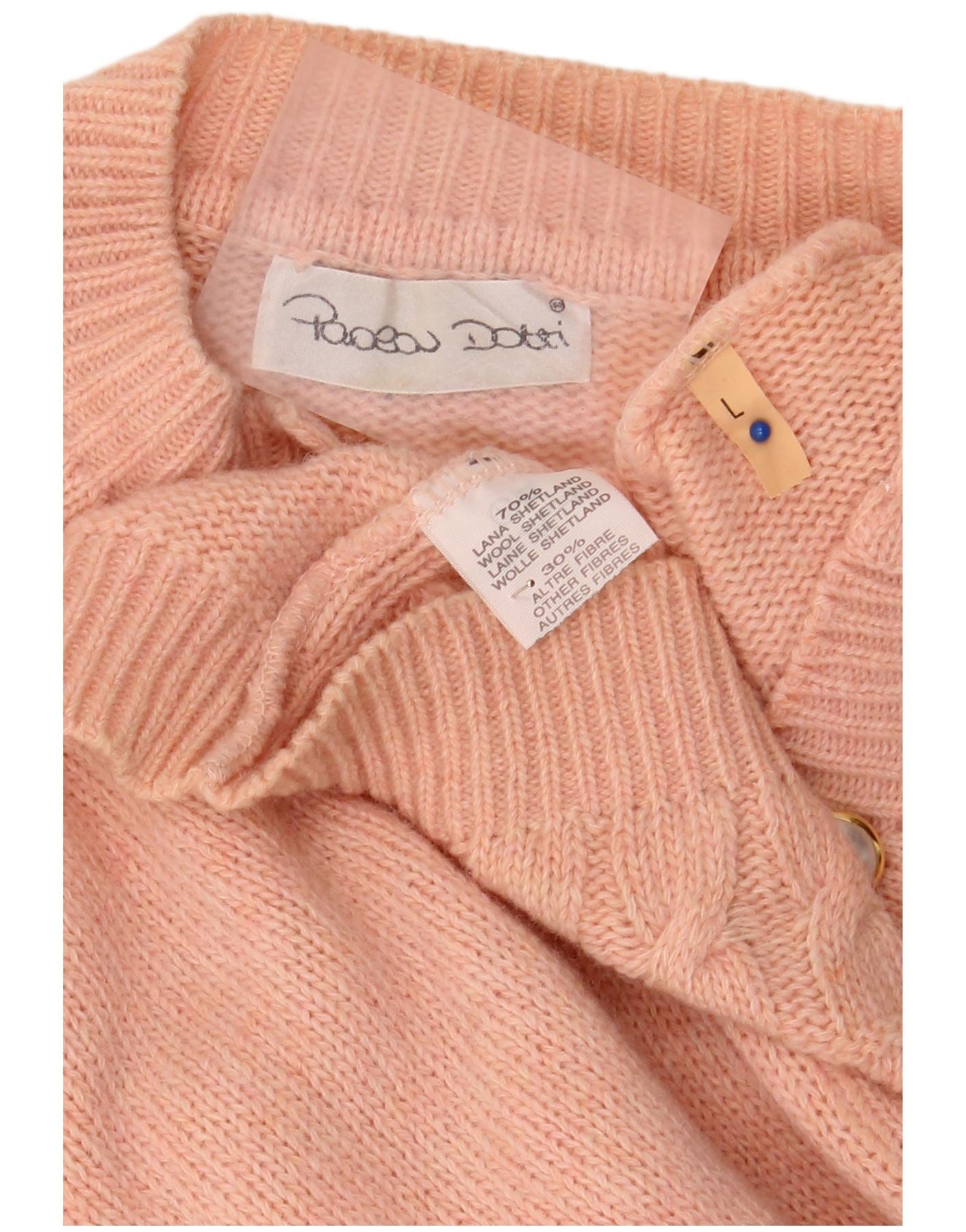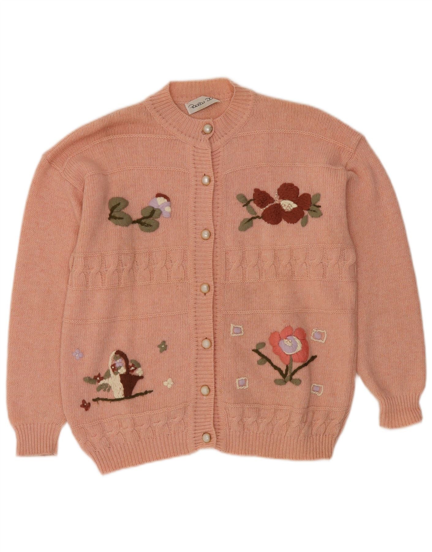 Maglione cardigan da donna VINTAGE UK 16 grande lana floreale rosa