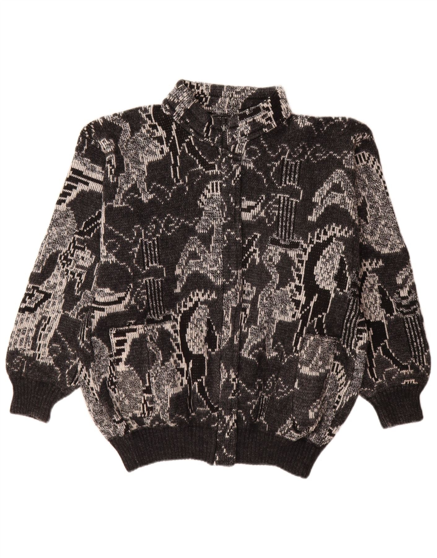 Maglione cardigan da donna vintage UK 18 XL lana geometrica nera
