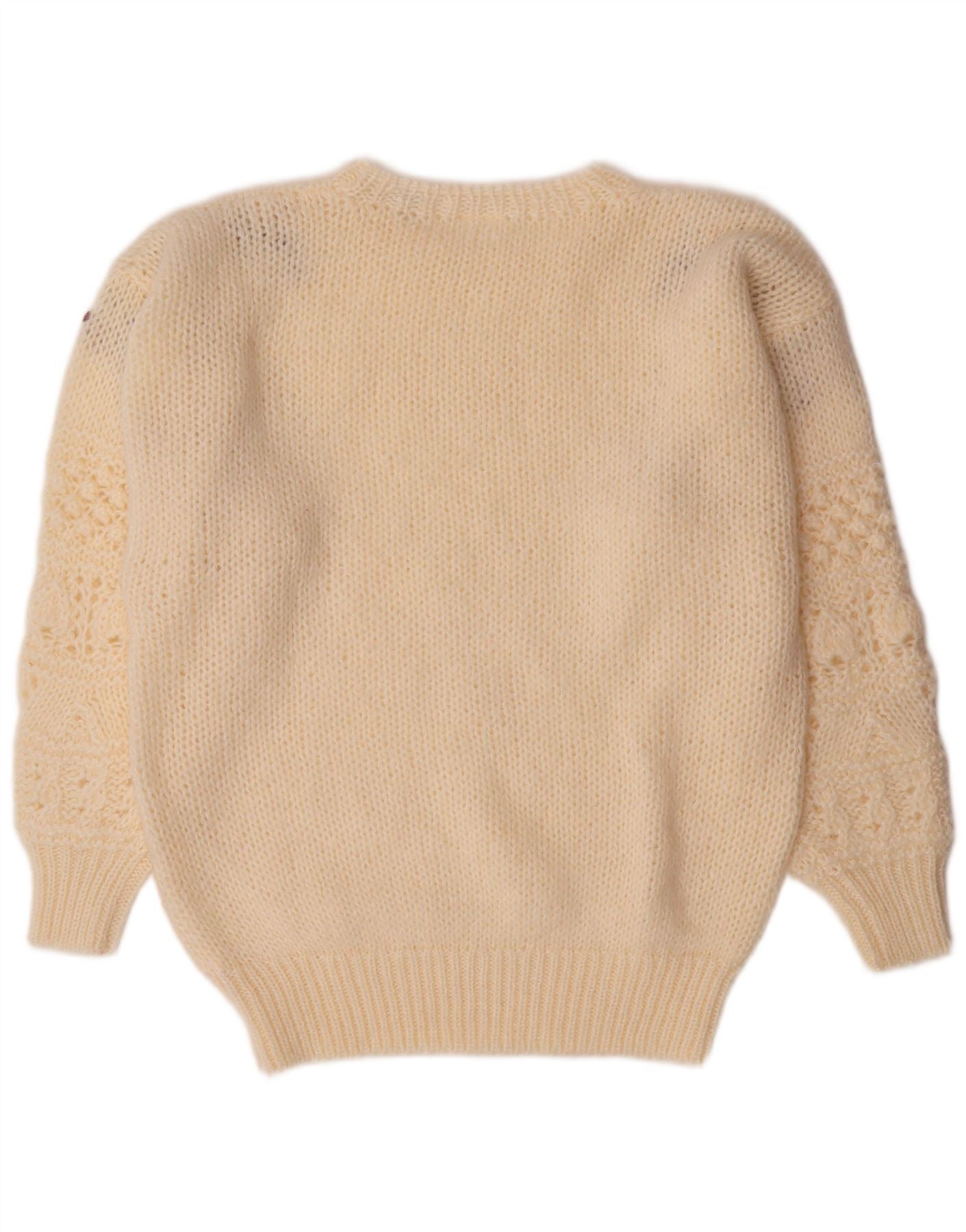 Maglione maglione girocollo da donna VINTAGE EU 44/46 XL bianco sporco floreale