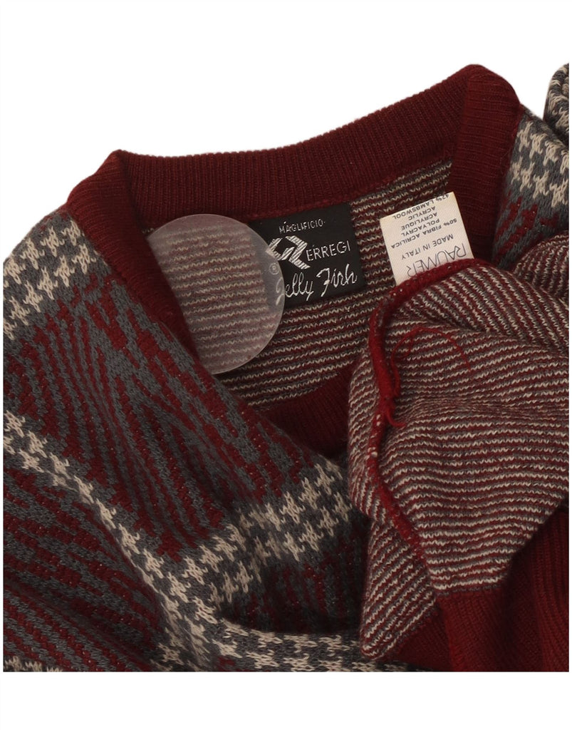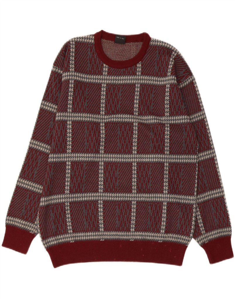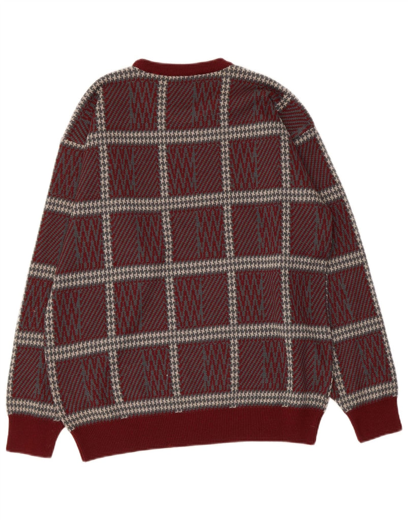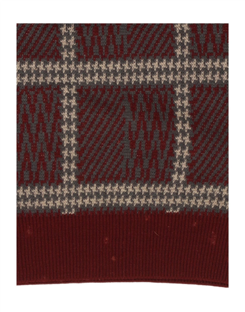 Maglione maglione girocollo da donna VINTAGE UK 14 Acrilico a quadri bordeaux grande