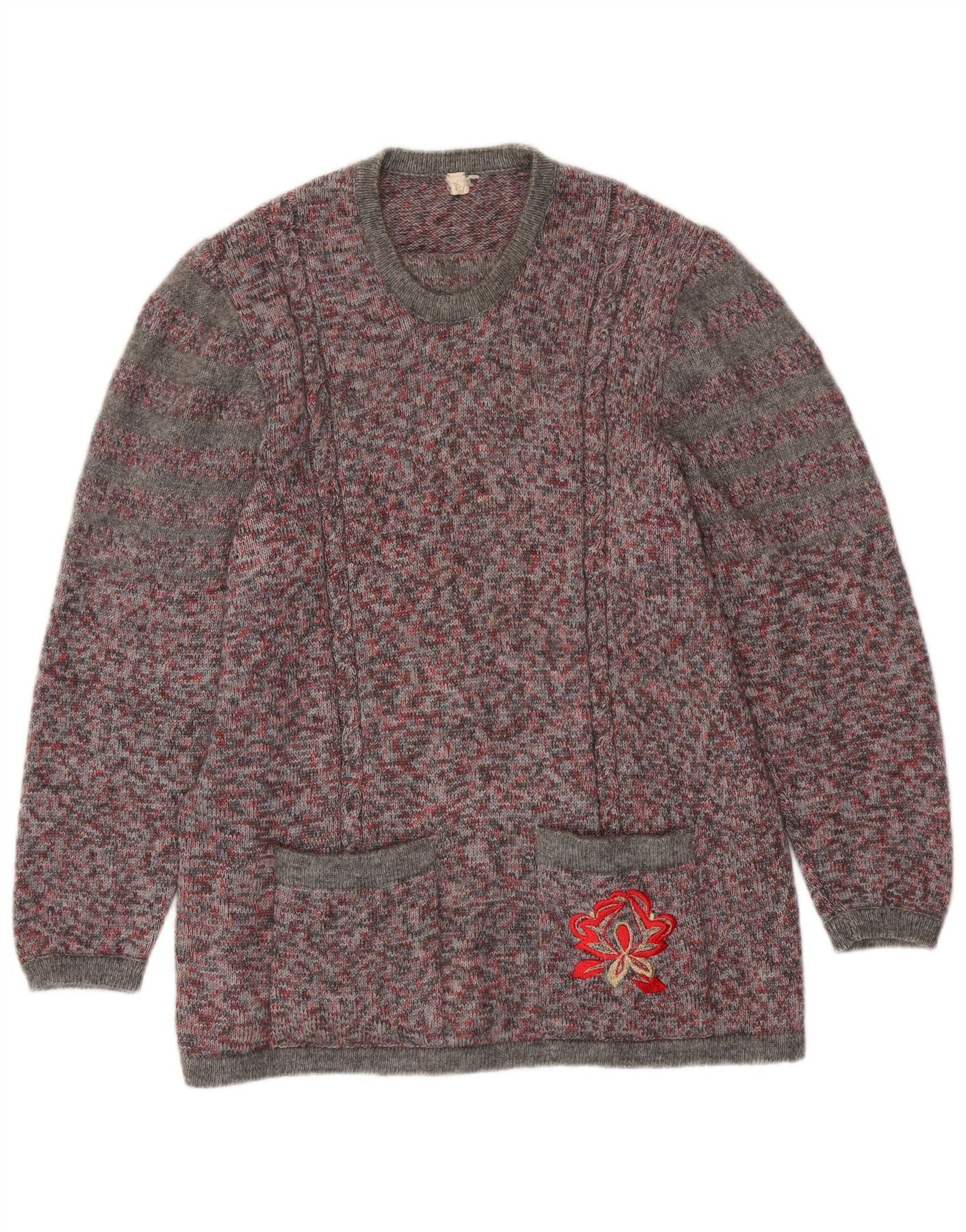 Maglione maglione girocollo da donna VINTAGE UK 16 grande chiazzato multicolore