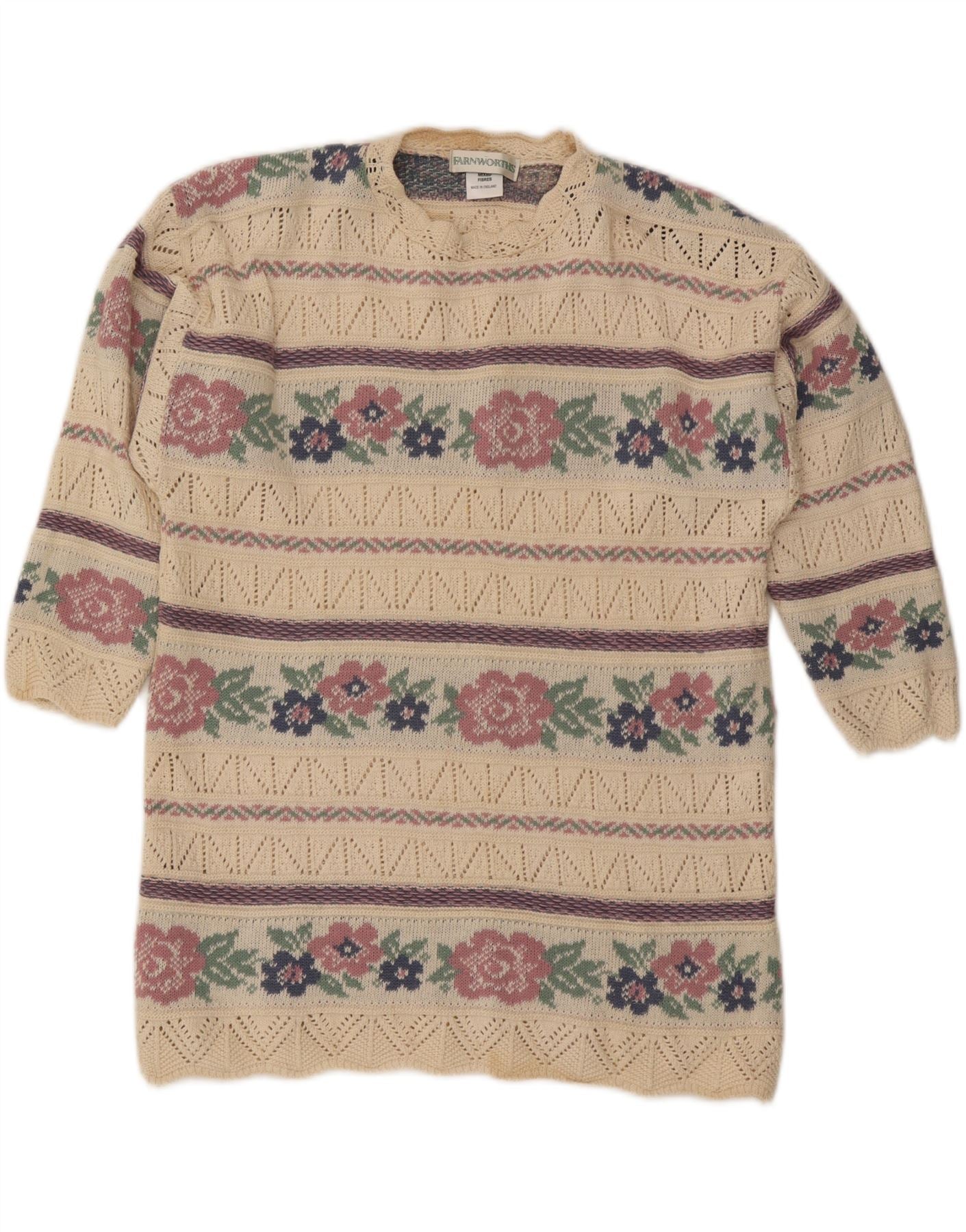 VINTAGE Womens Crew Neck Jumper Sweater UK 16 Large Off White Floral