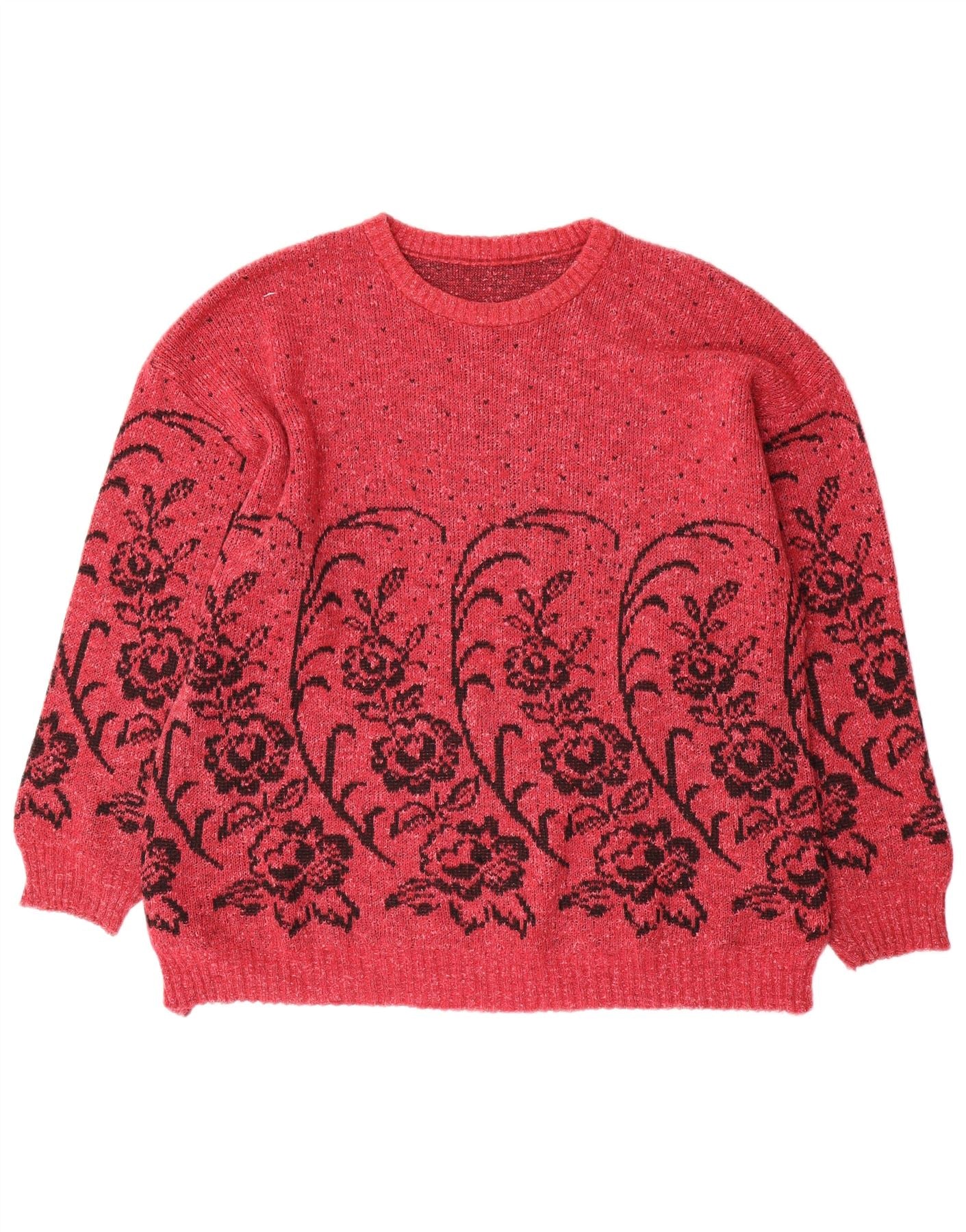 Maglione maglione girocollo da donna VINTAGE UK 16 Grande floreale rosso