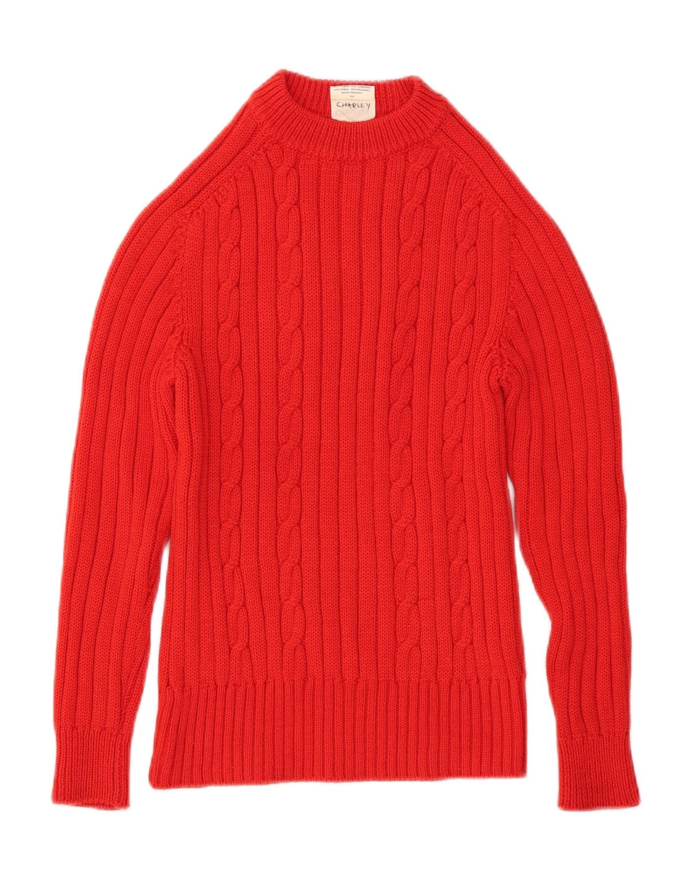 Maglione maglione girocollo da donna VINTAGE UK 8 piccolo in lana rossa