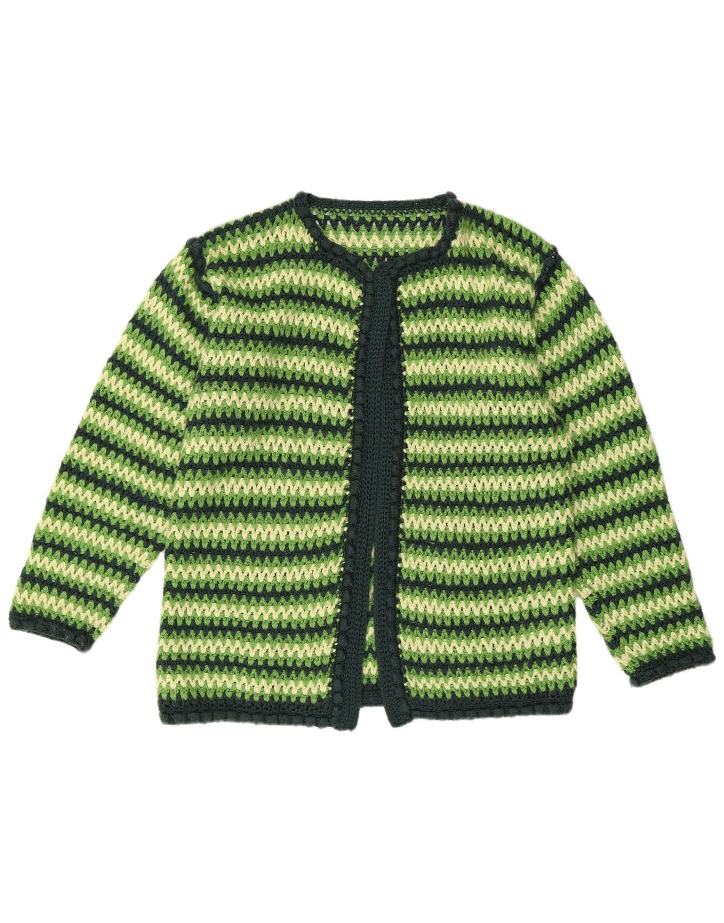 Maglione cardigan all'uncinetto da donna VINTAGE UK 16 grandi strisce verdi