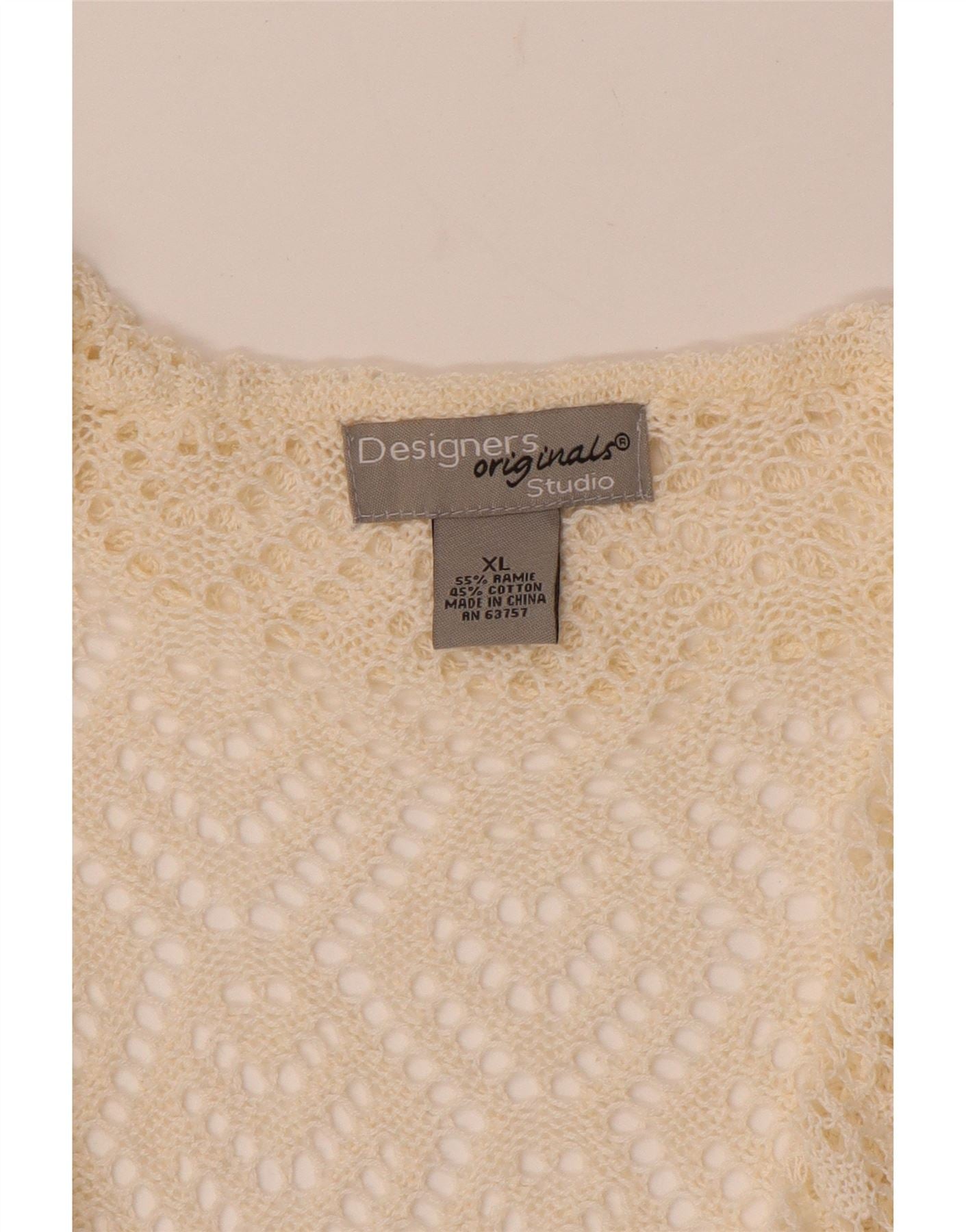 Maglione cardigan all'uncinetto con maniche a 3/4 corto da donna VINTAGE UK 18 XL bianco sporco