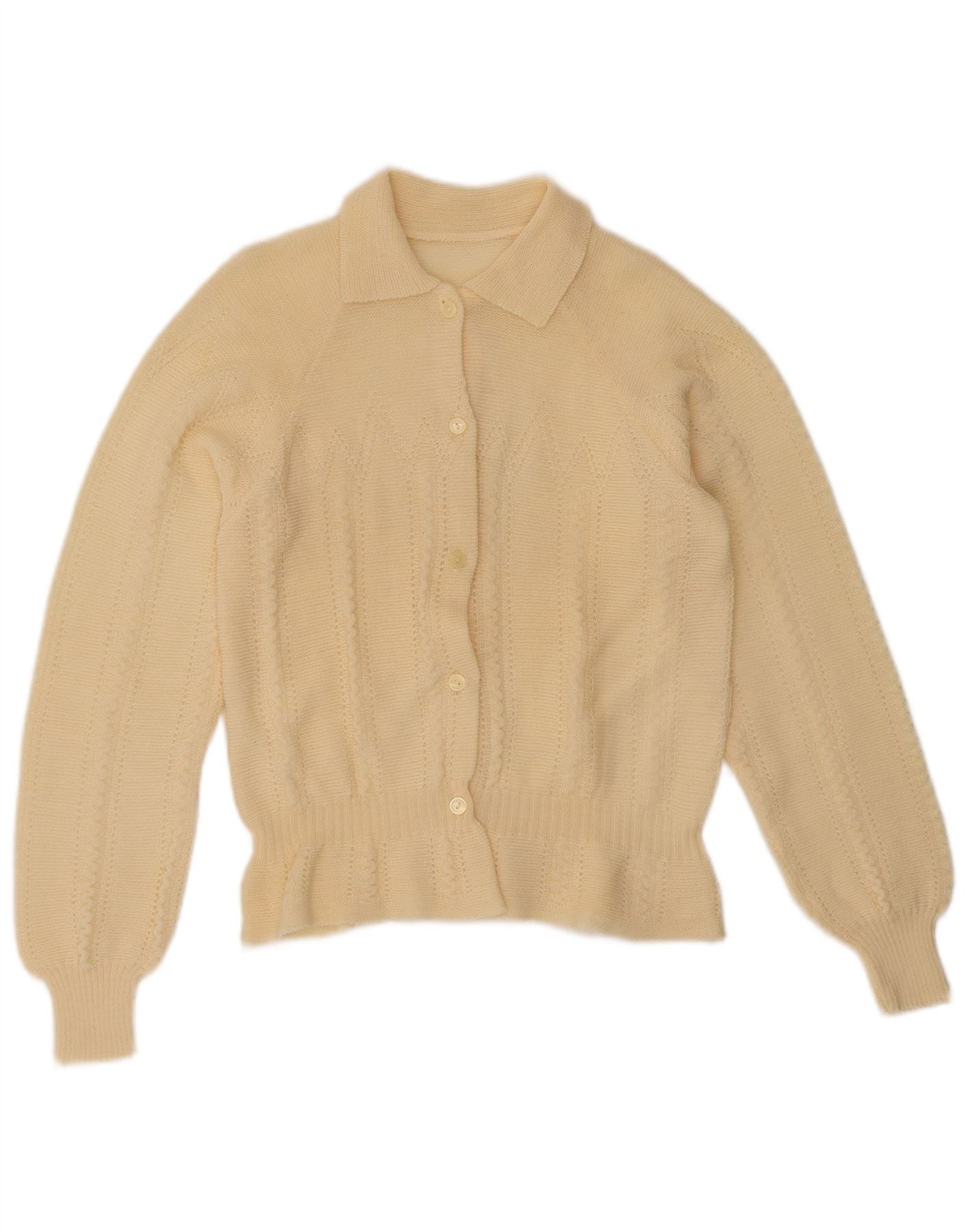 Maglione cardigan corto da donna VINTAGE IT 42 Lana merino giallo medio