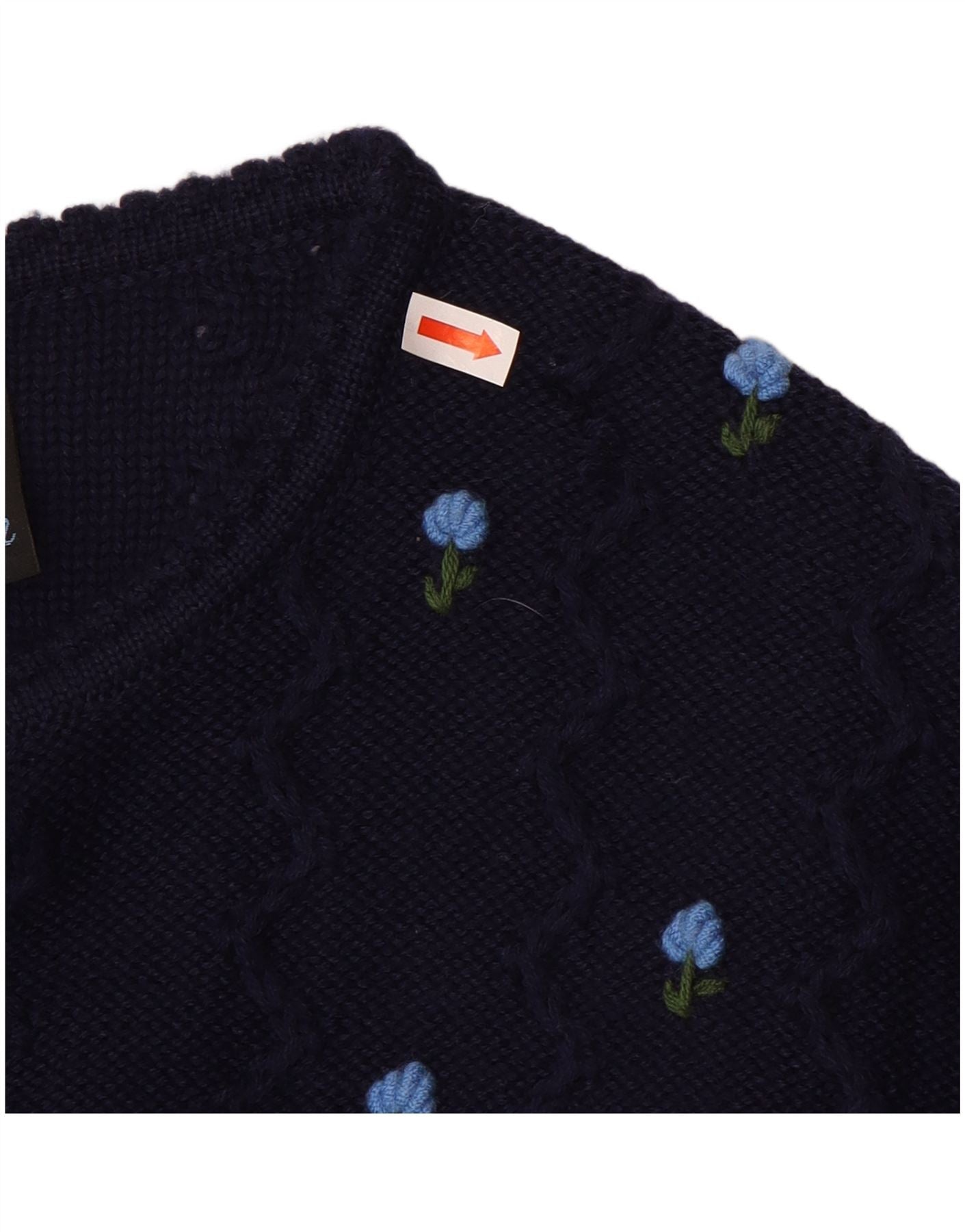 Maglione cardigan corto da donna vintage UK 12 medio blu navy floreale