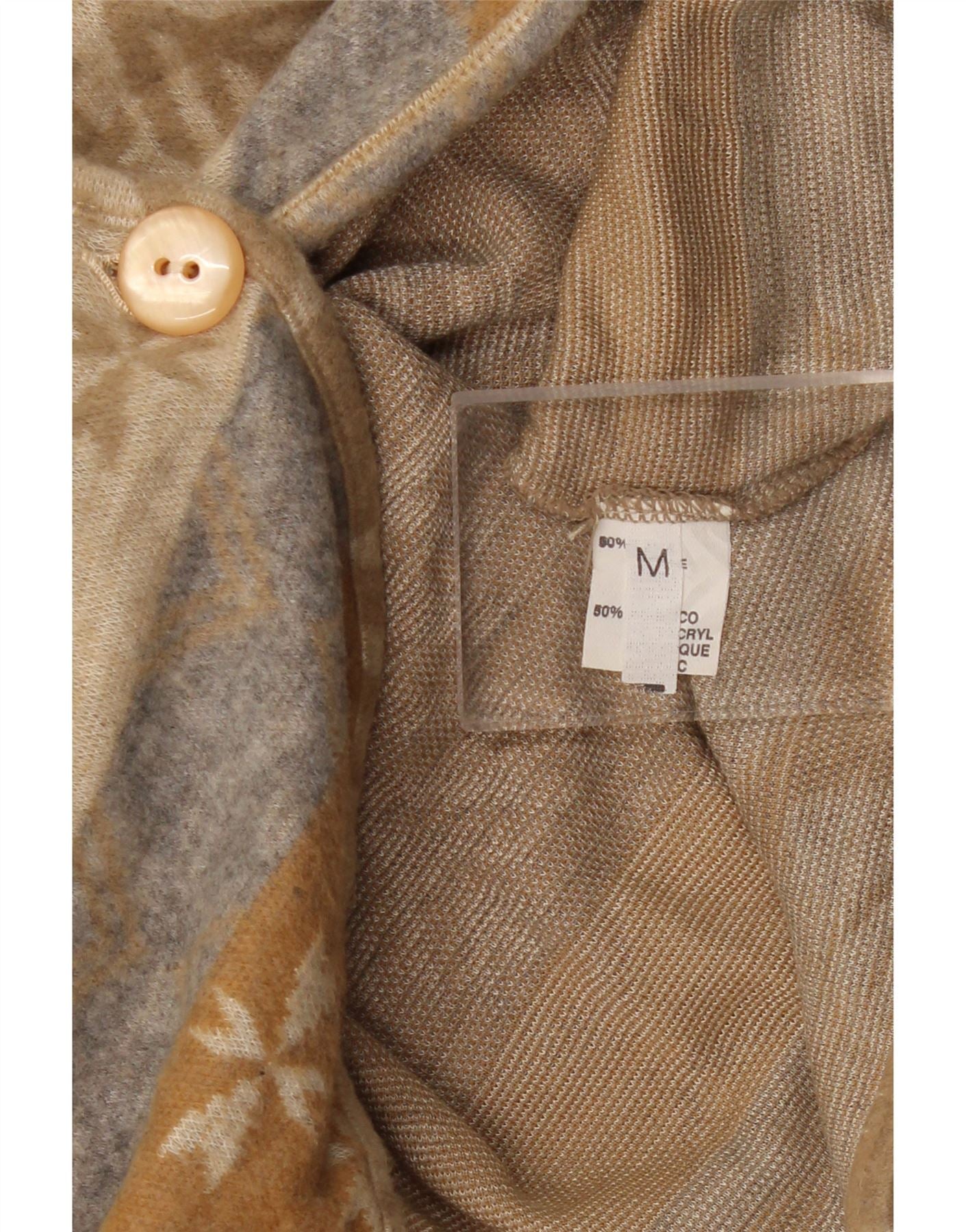 Maglione cardigan corto da donna VINTAGE UK 14 Beige medio Fair Isle