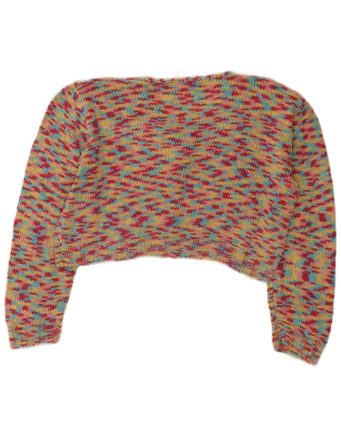 Maglione cardigan corto da donna vintage UK 14 medio multicolore screziato