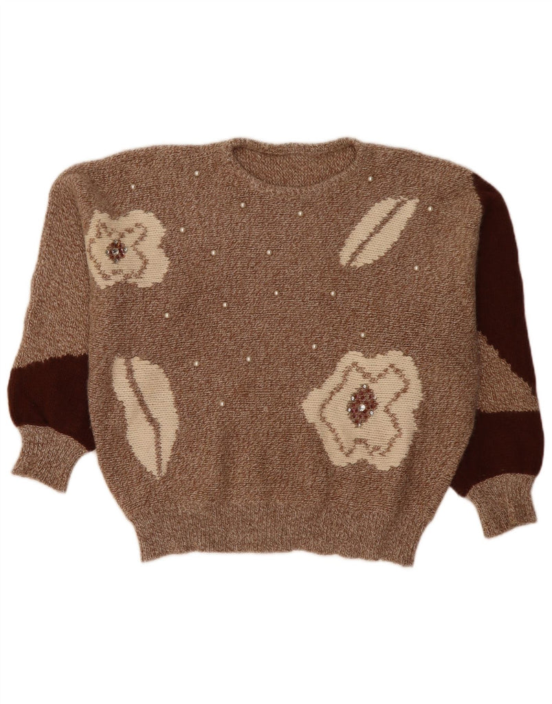Maglione girocollo corto da donna VINTAGE UK 14 Marrone medio screziato
