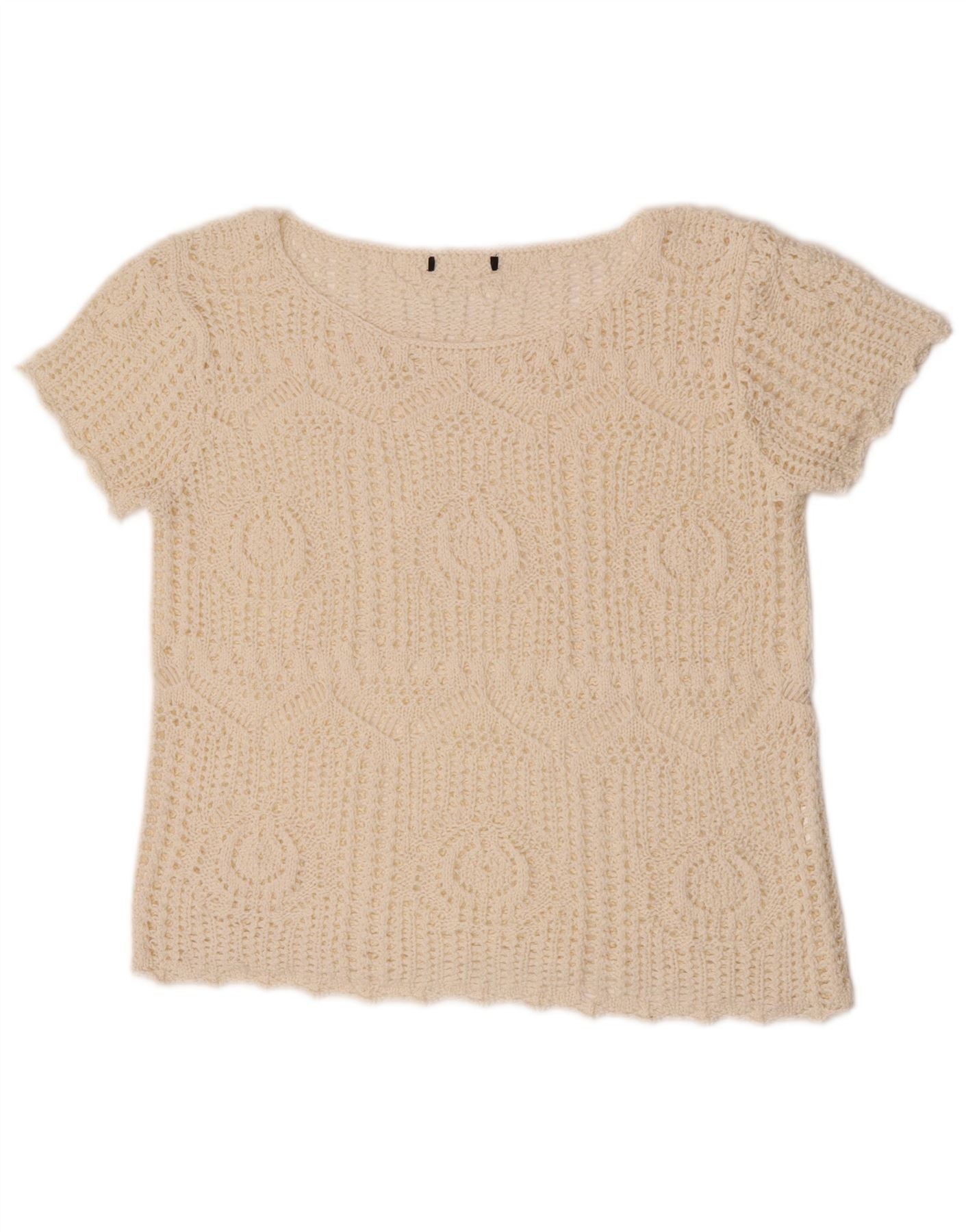 Camicetta vintage da donna all'uncinetto corta UK 12 medio bianco sporco