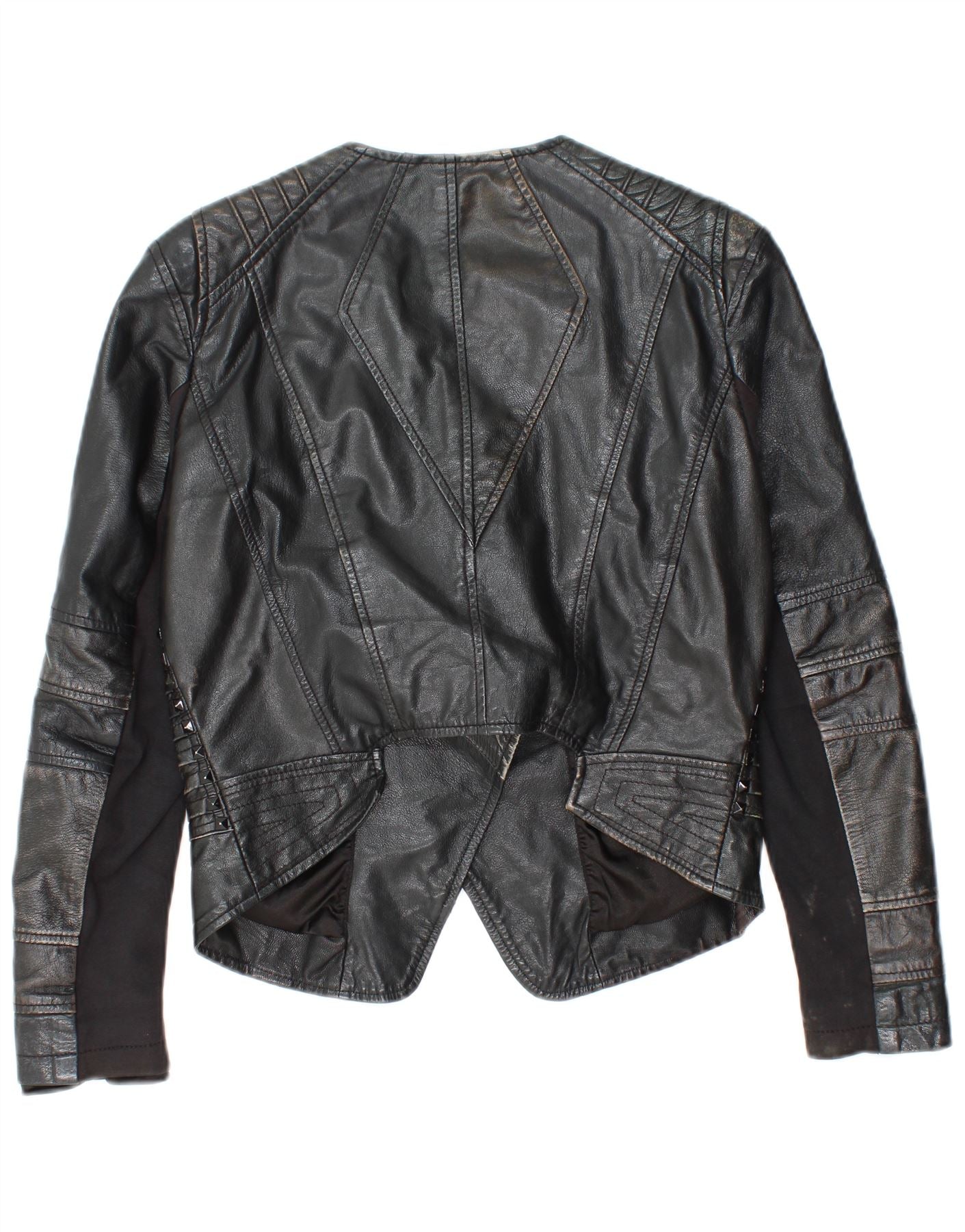 Giacca da motociclista in pelle corta da donna vintage IT 40 piccola in pelle nera