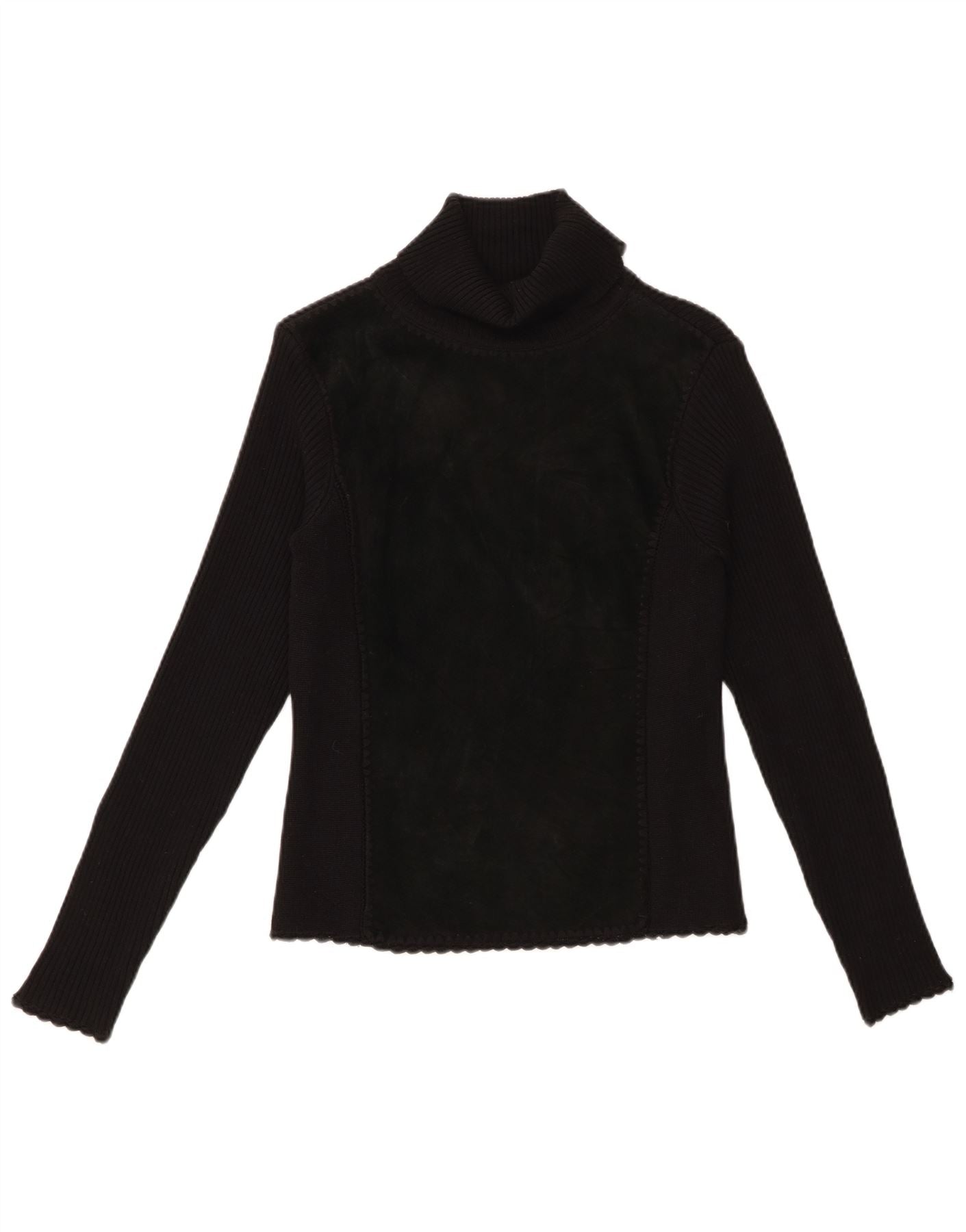 Maglione maglione collo alto corto da donna VINTAGE UK 8 piccolo nero