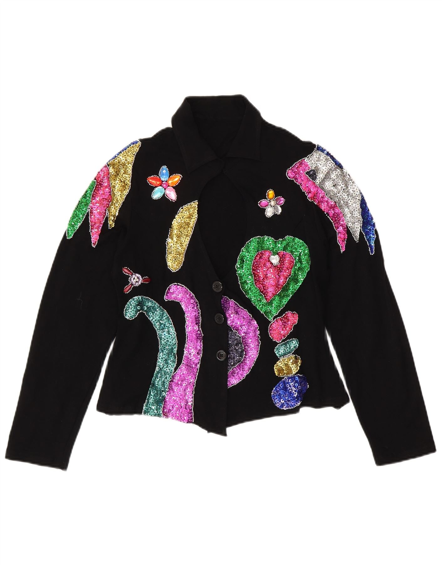 Camicetta corta da donna VINTAGE UK 12 Spandex floreale nero medio
