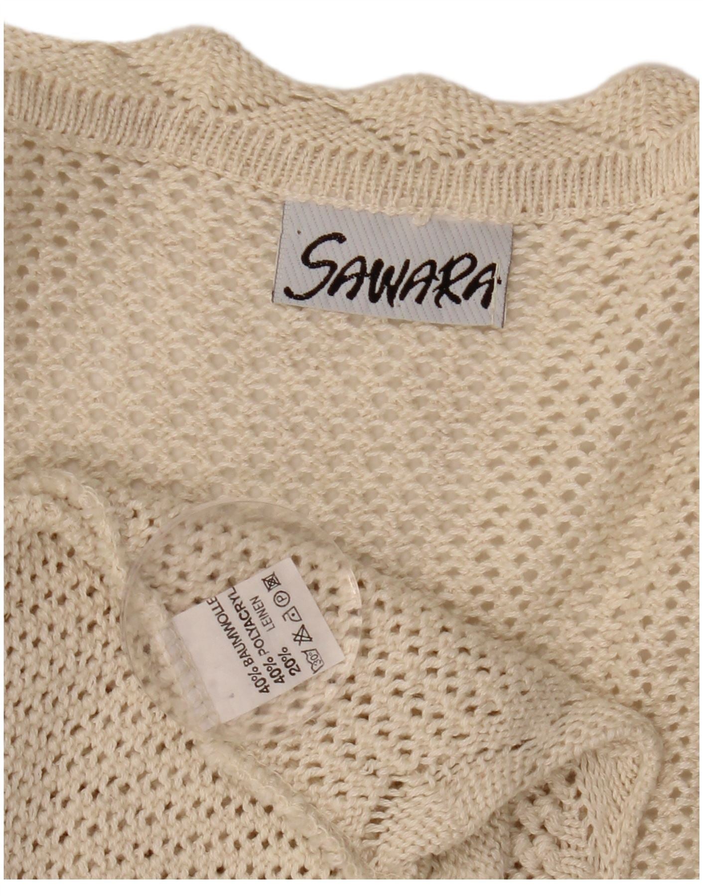 Maglione cardigan all'uncinetto senza maniche corto da donna VINTAGE UK 14 Large Beige