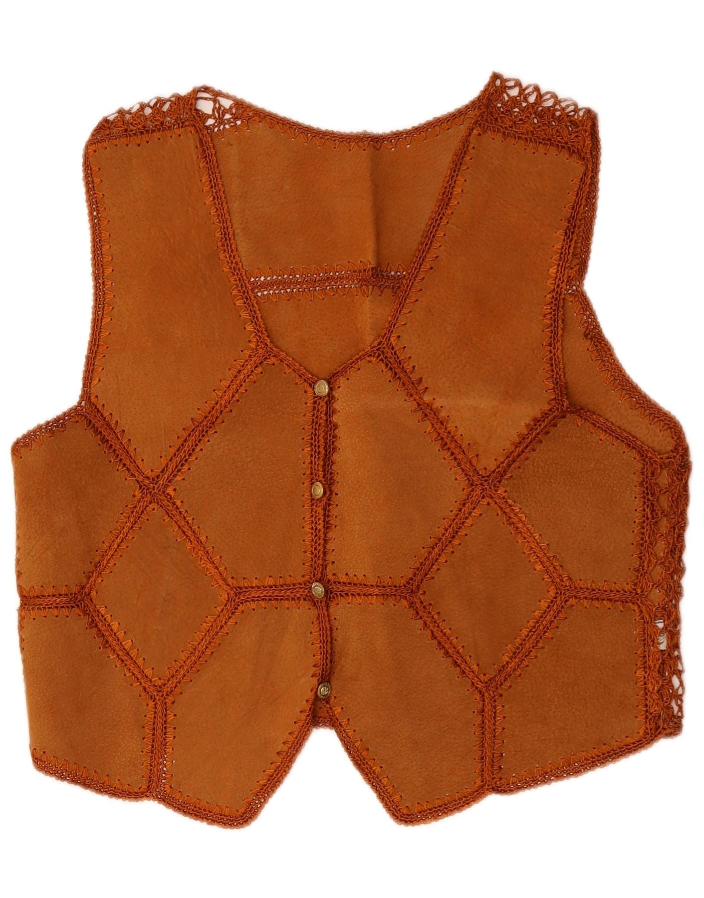 Gilet corto in pelle scamosciata da donna VINTAGE UK 14 Patchwork marrone medio