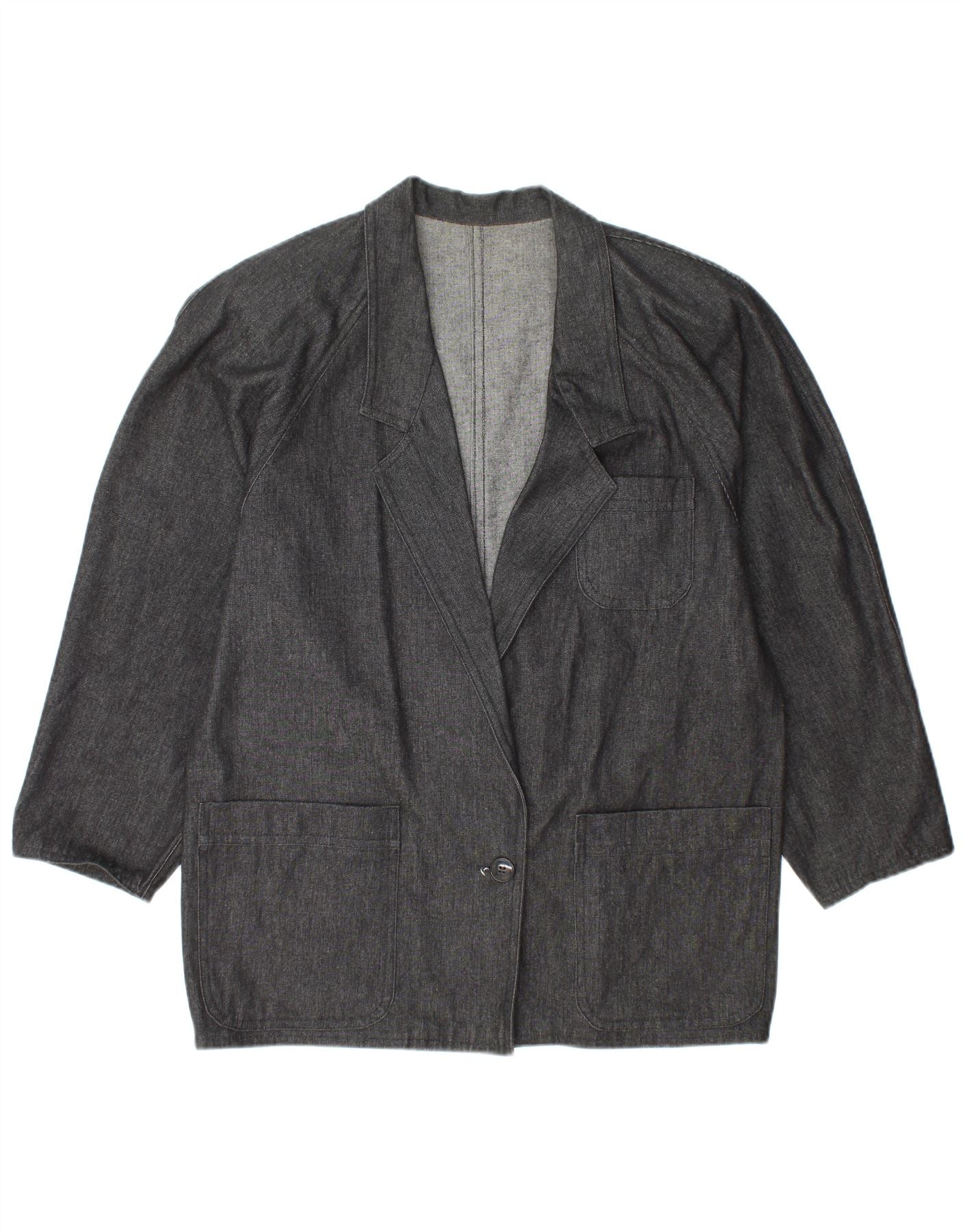 Giacca blazer da donna a 1 bottone in denim VINTAGE UK 14 grande grigio