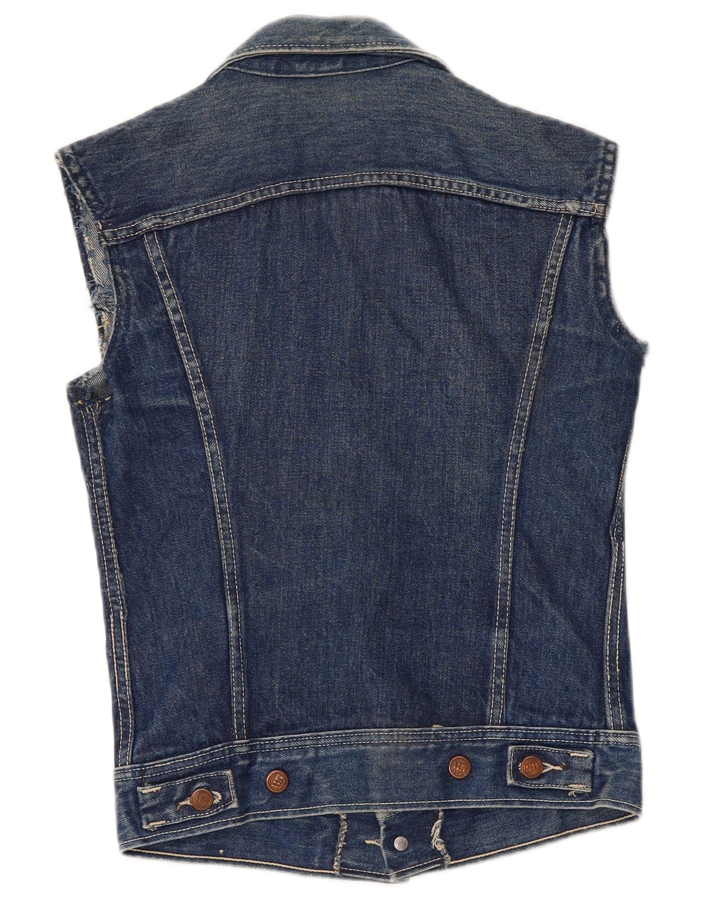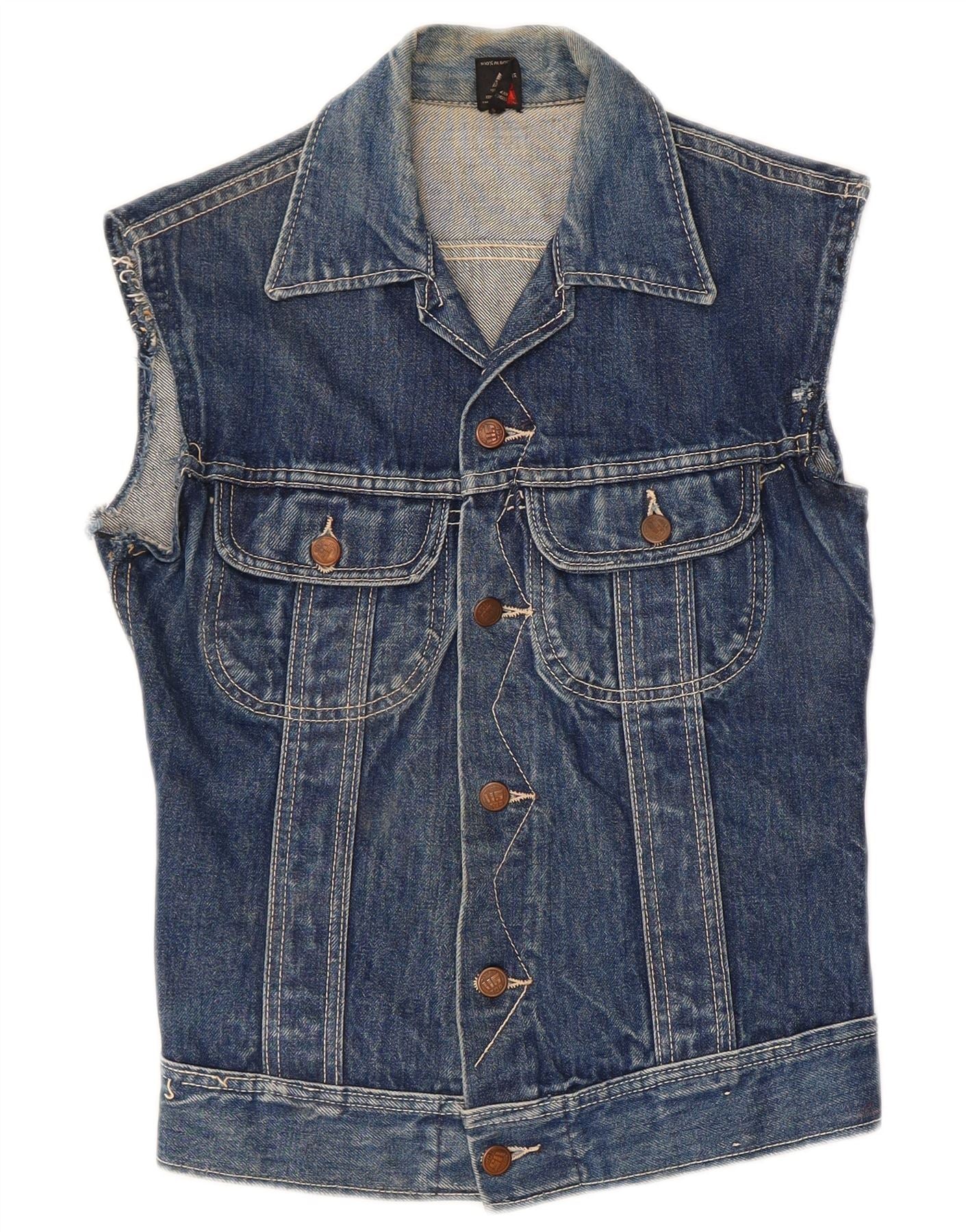 Gilet in denim vintage da donna UK 8 piccolo cotone blu