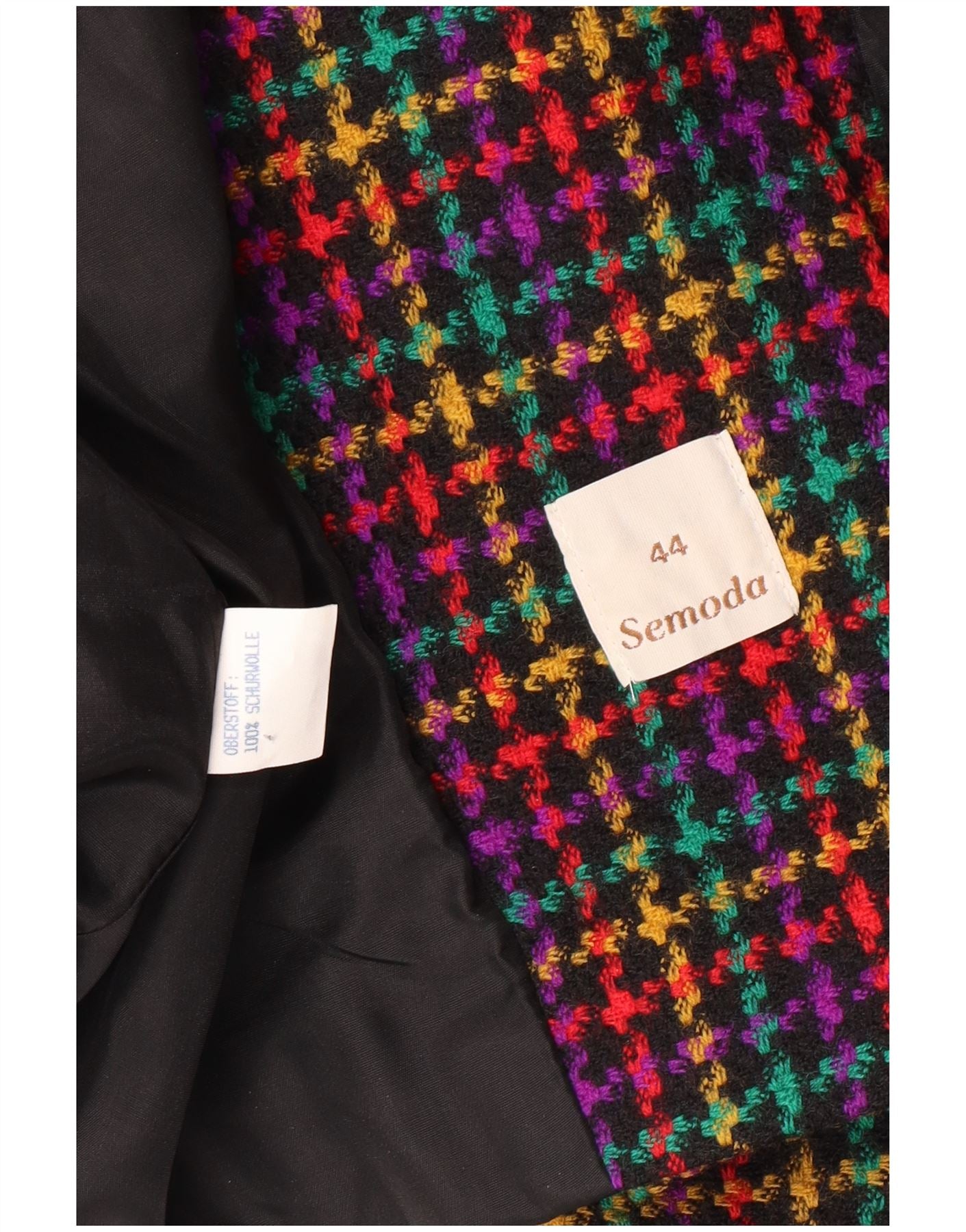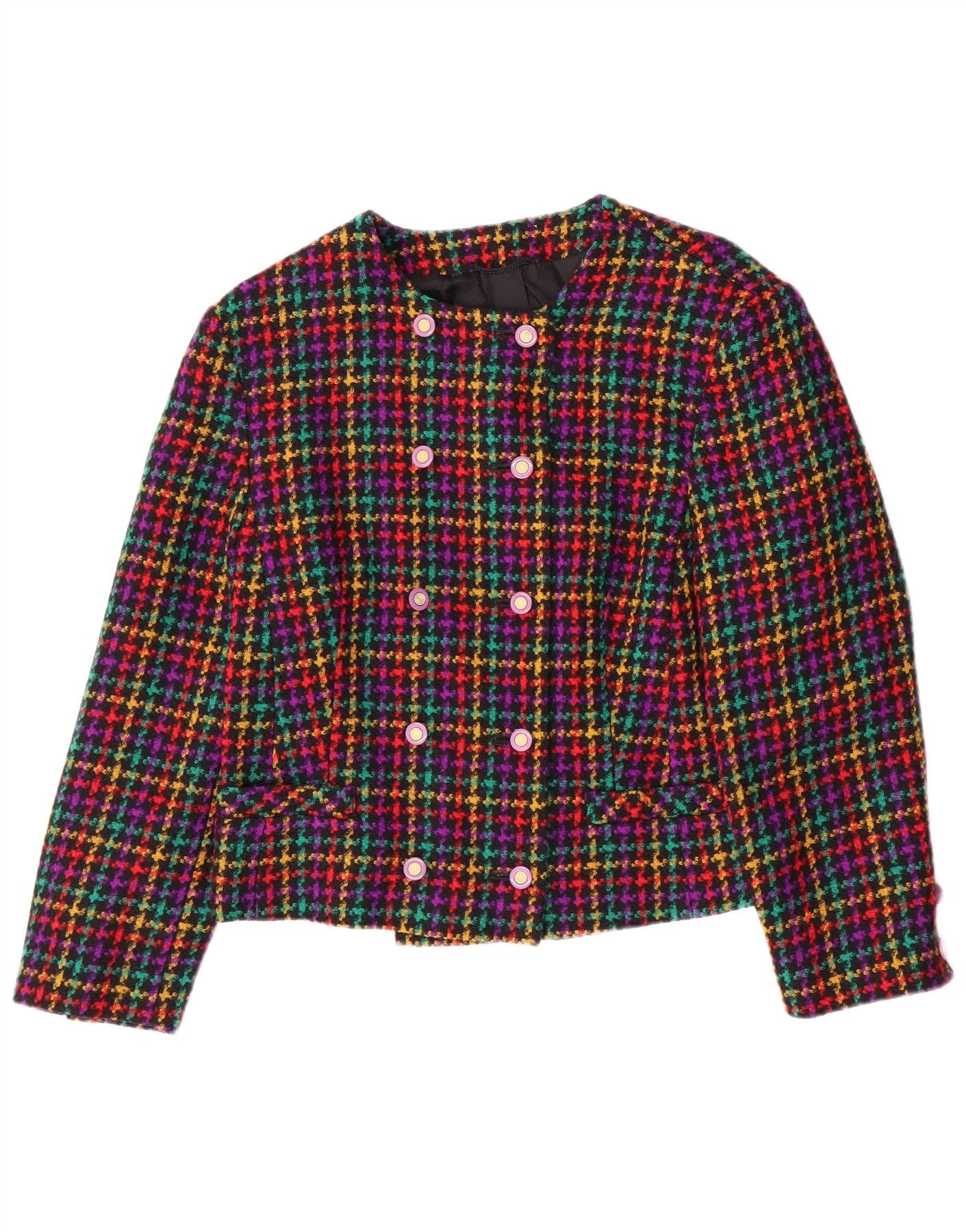 Giacca blazer doppiopetto da donna VINTAGE EU 44 XL a quadri multicolore