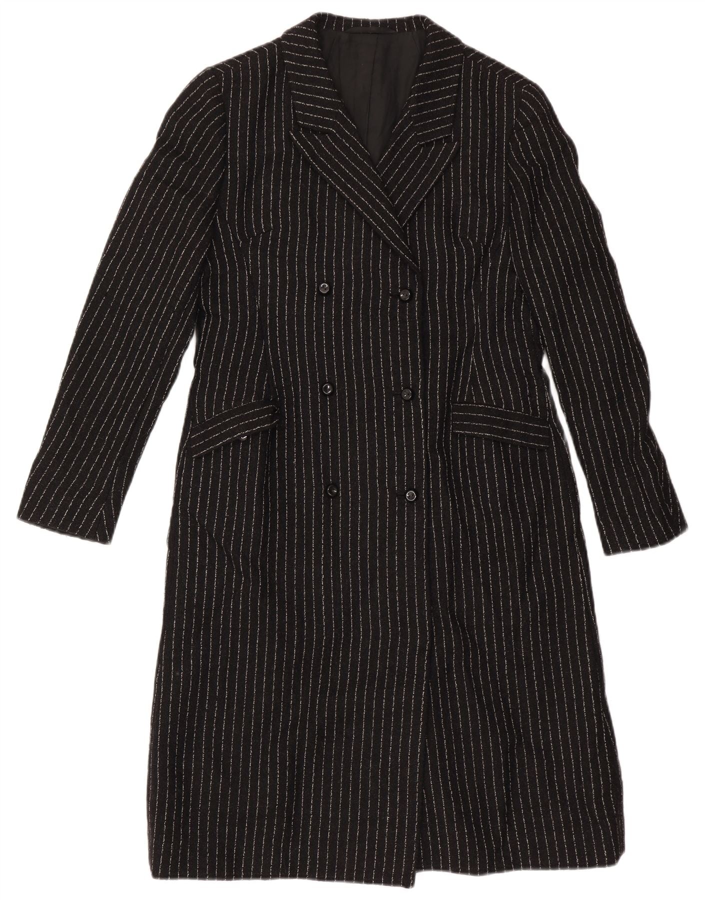 Cappotto doppiopetto vintage da donna UK 8 piccolo gessato nero