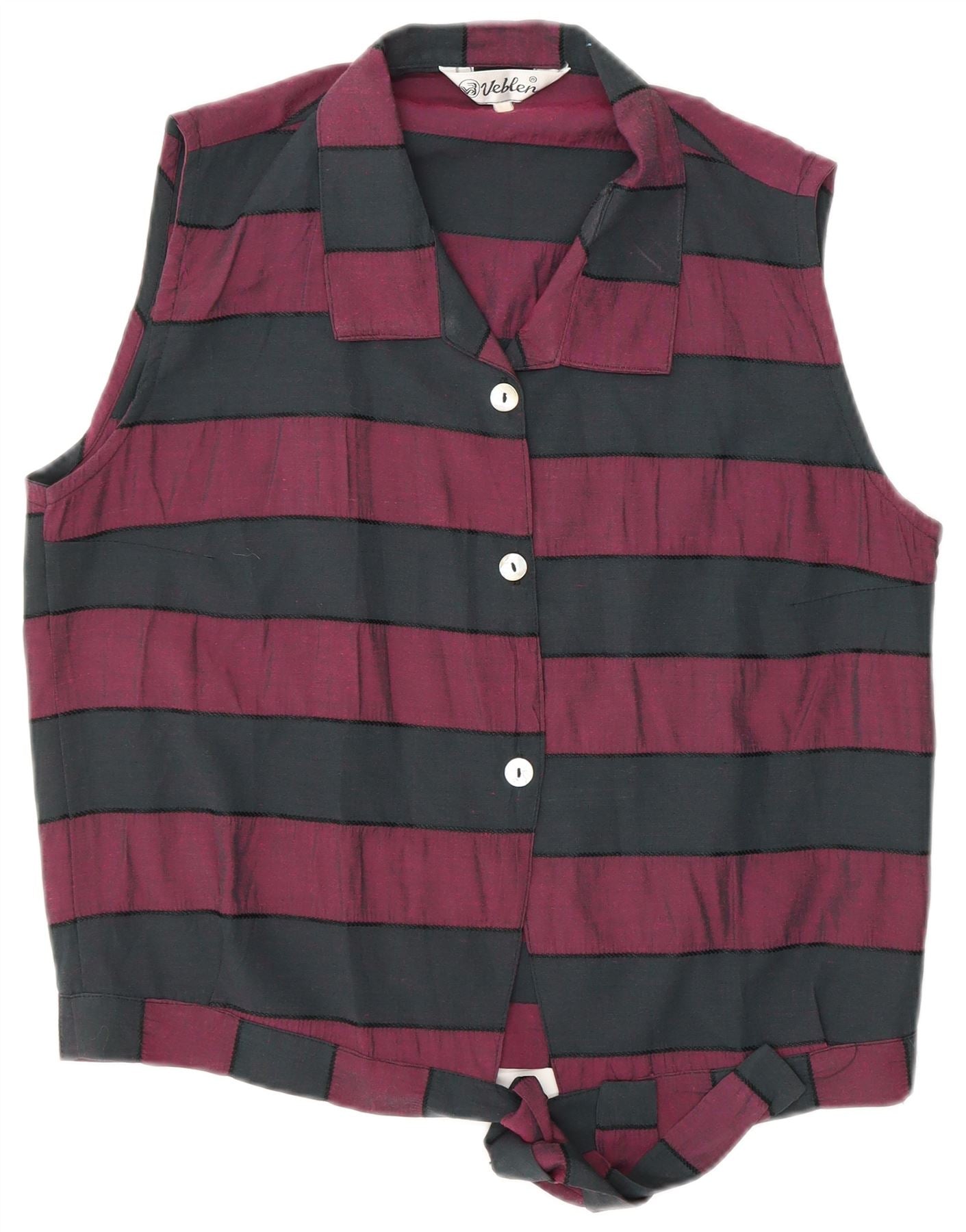 Camicetta da donna con cravatta sul davanti VINTAGE UK 16 media a righe nere
