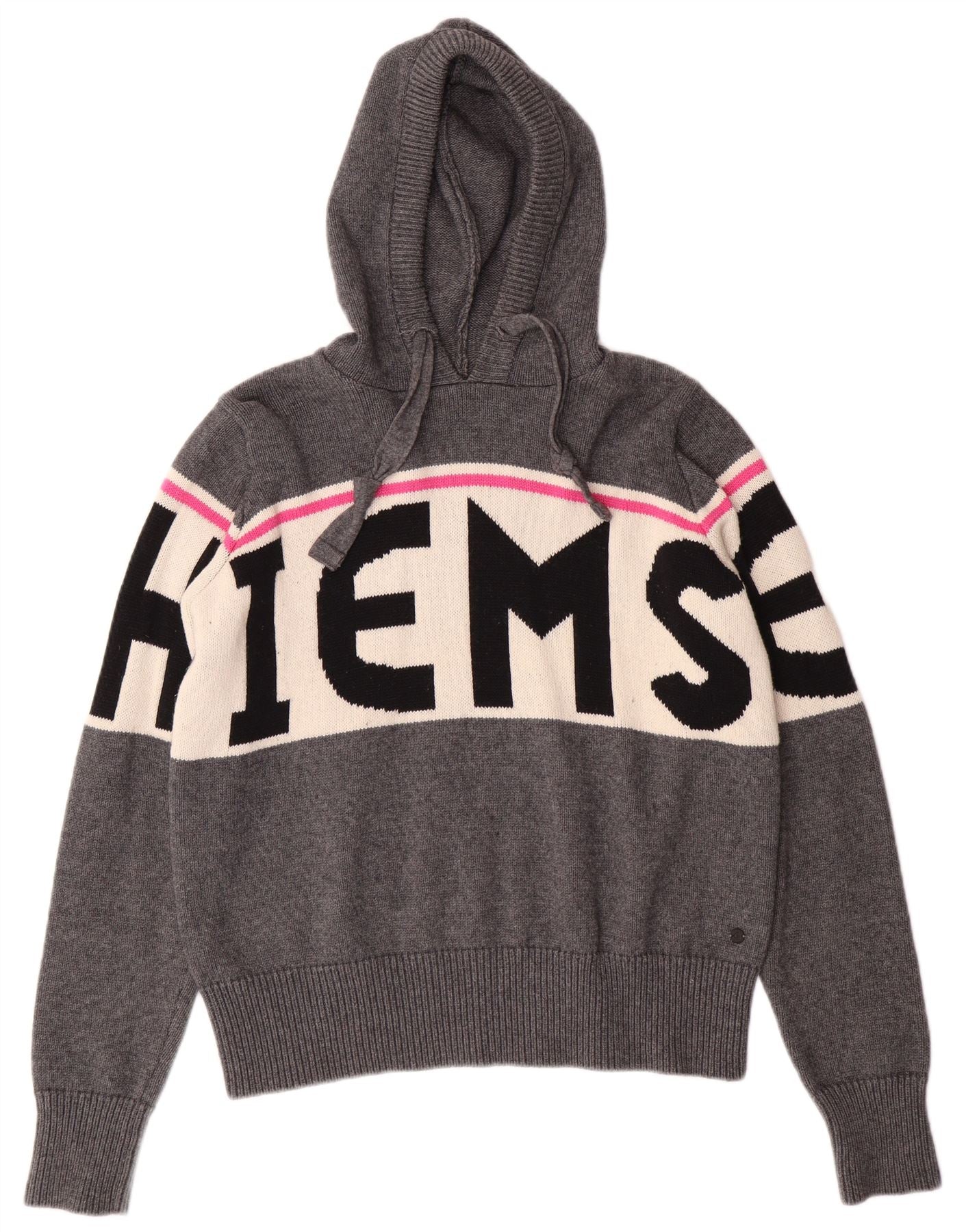 Maglione con cappuccio grafico da donna VINTAGE UK 10 Small Grey Colourblock