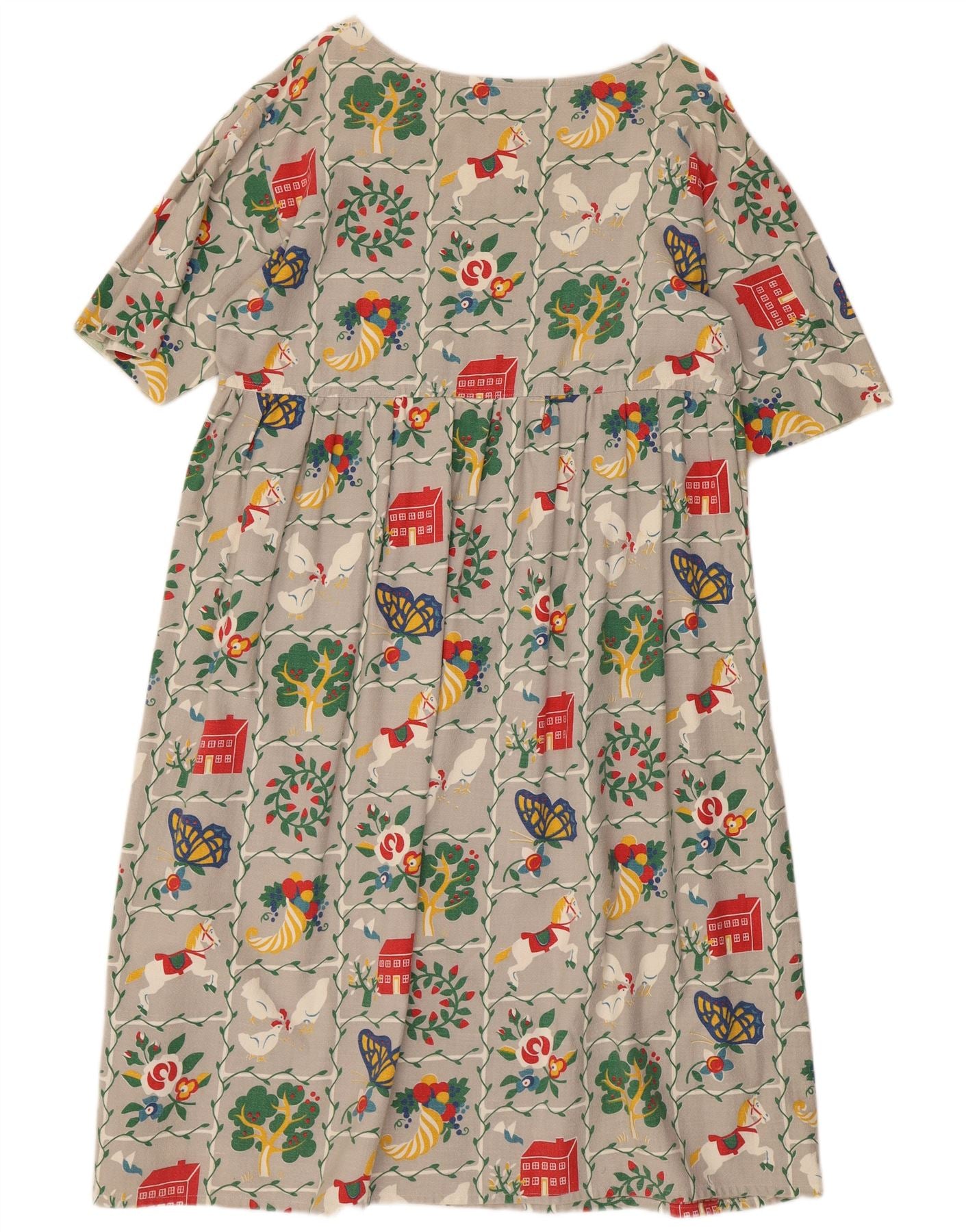 Abito a trapezio grafico da donna VINTAGE UK 16 Grande floreale grigio