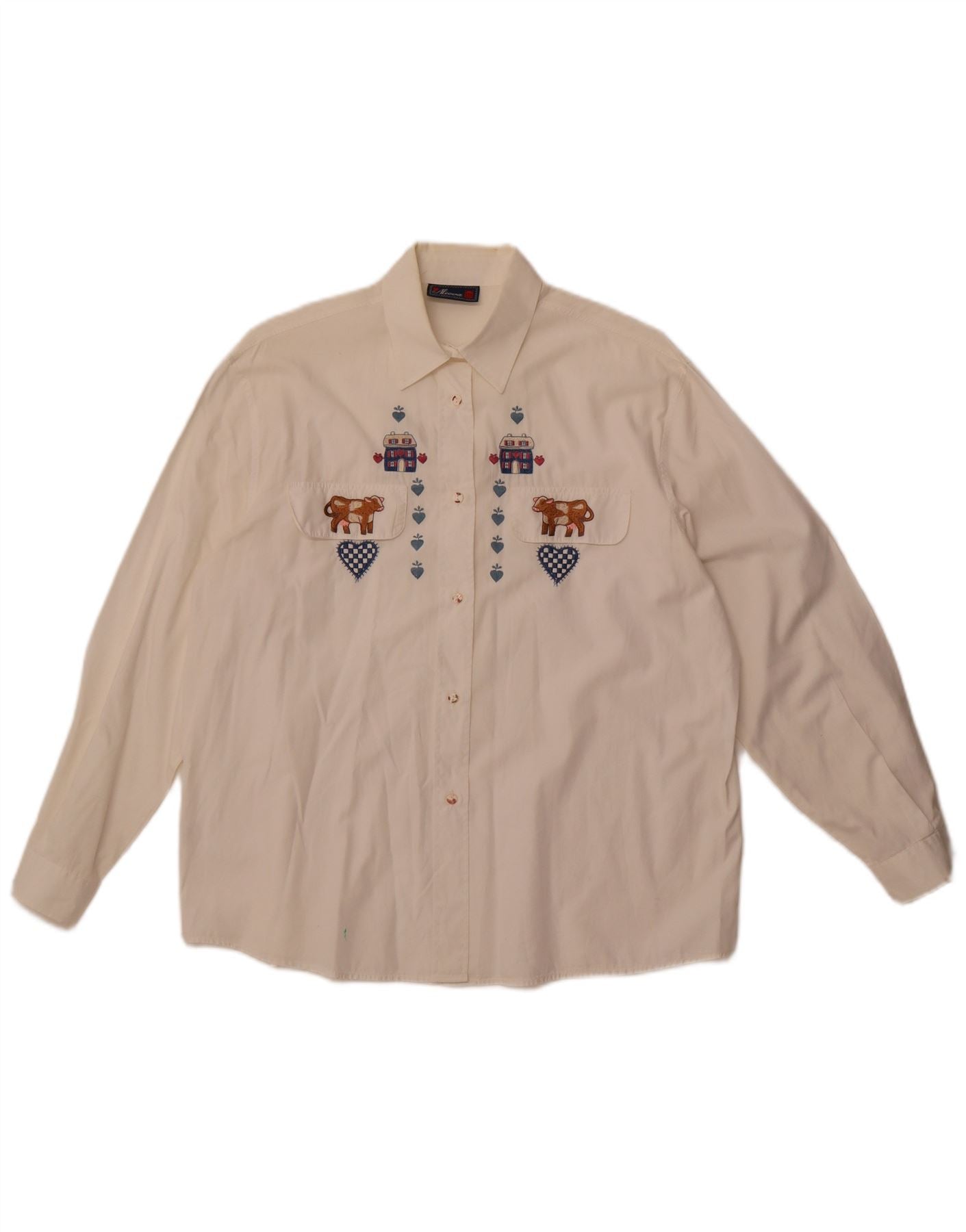 Camicia grafica da donna vintage UK 14 grande cotone bianco