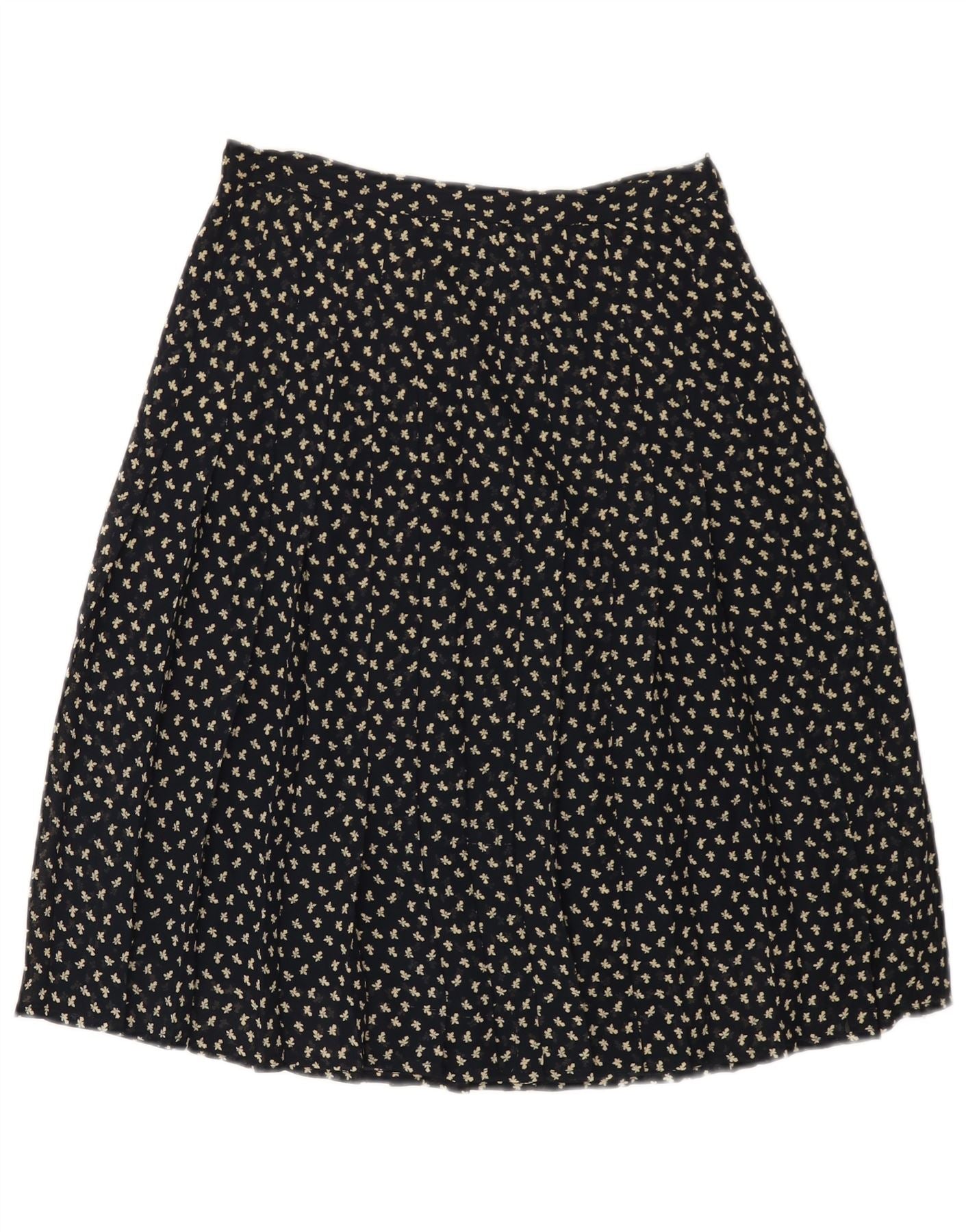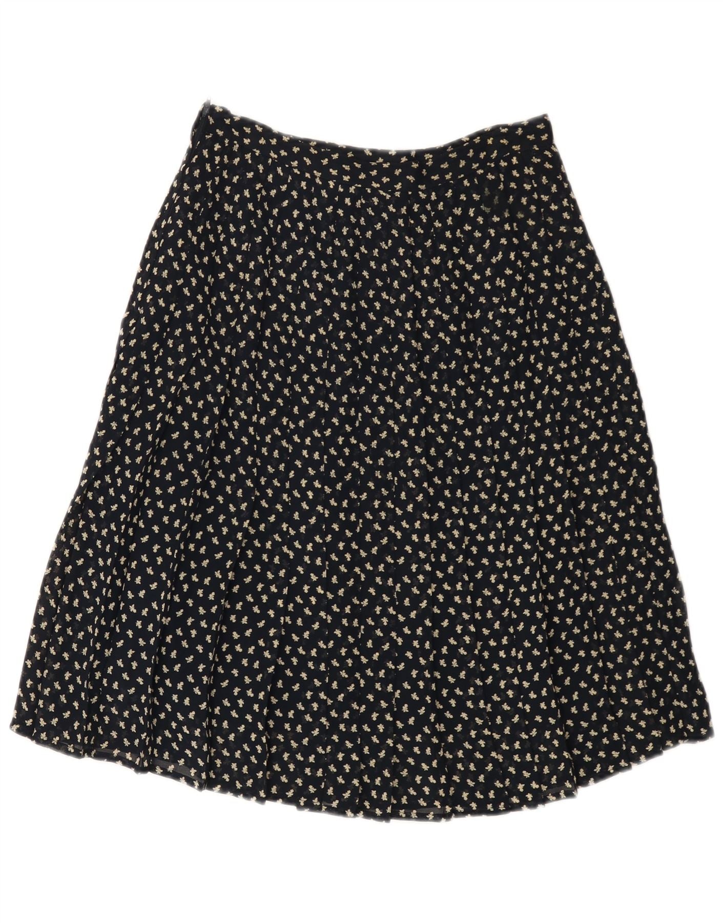 Gonna a trapezio a vita alta da donna VINTAGE IT 44 media W26 blu navy floreale