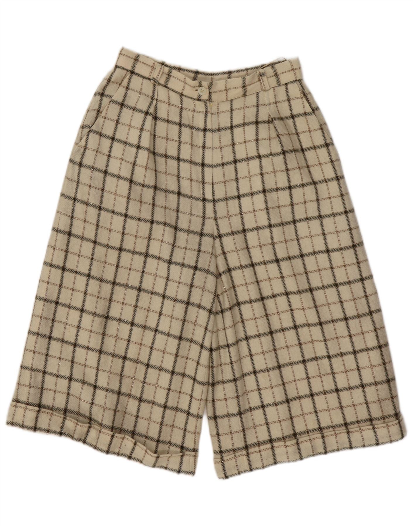 Pantaloncini casual a vita alta da donna VINTAGE medi W26 lana a quadri beige