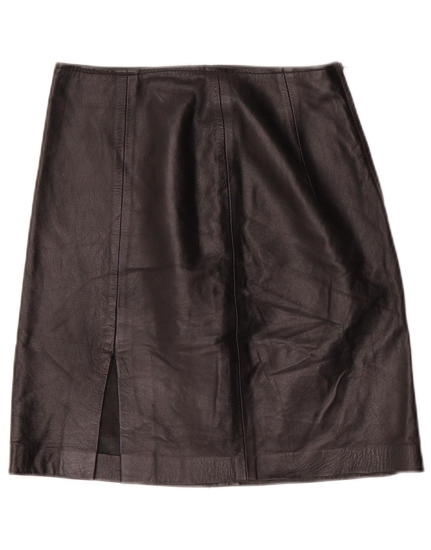 Gonna in pelle a vita alta da donna vintage IT 42 media W24 nera