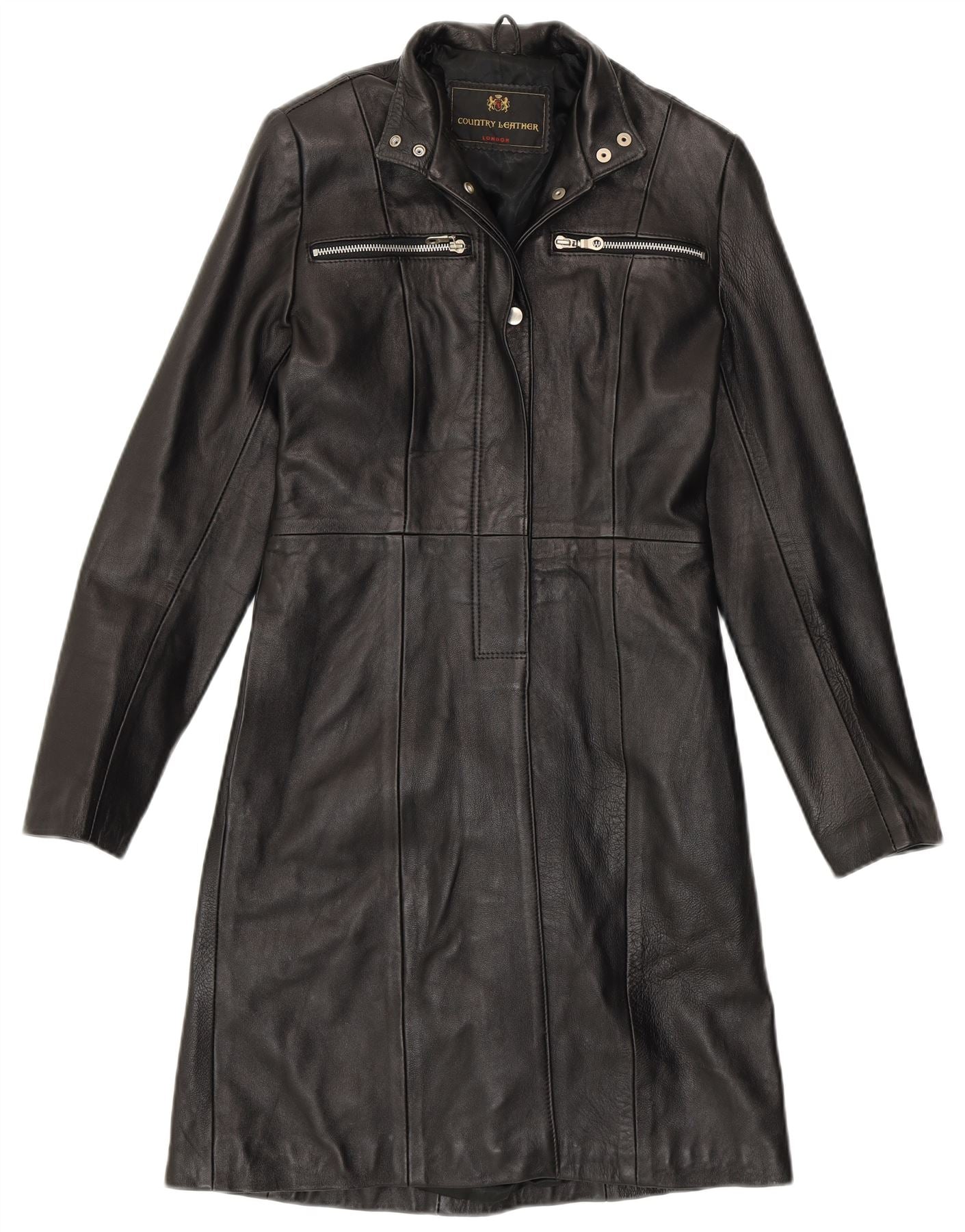 Cappotto in pelle da donna VINTAGE UK 8 piccolo in pelle nera